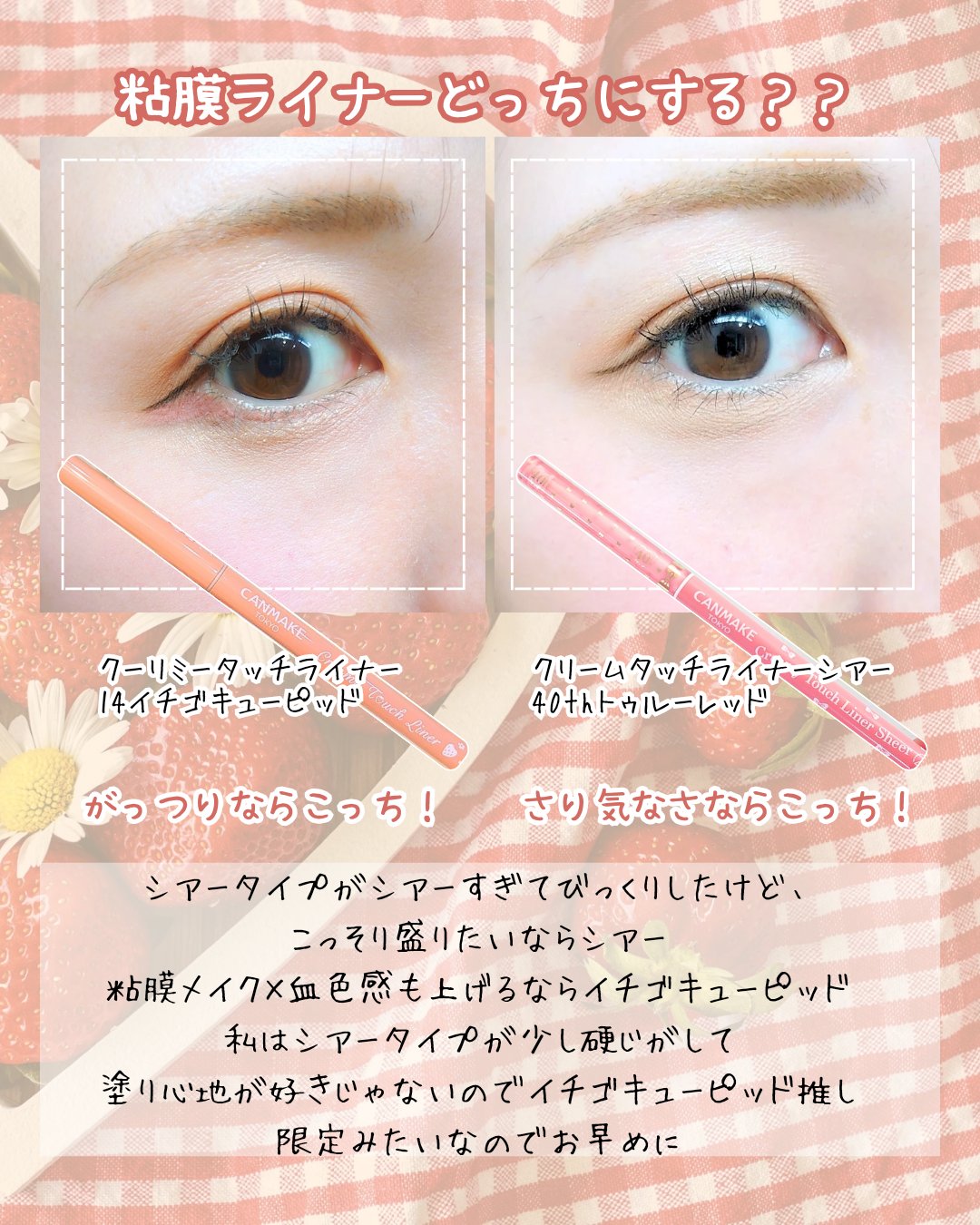 ナチュラルに盛る!粘膜色ライナー🍓🏷️クリーミータッチライナー大人気だった限定色が再販🍓🩷再販してくれて嬉しい…!!!いちごみたいなピンクっぽカラー。12イチゴストーム14イチゴキューピッド🏷️クリーミータッチライナー シアー40周年を記念し...