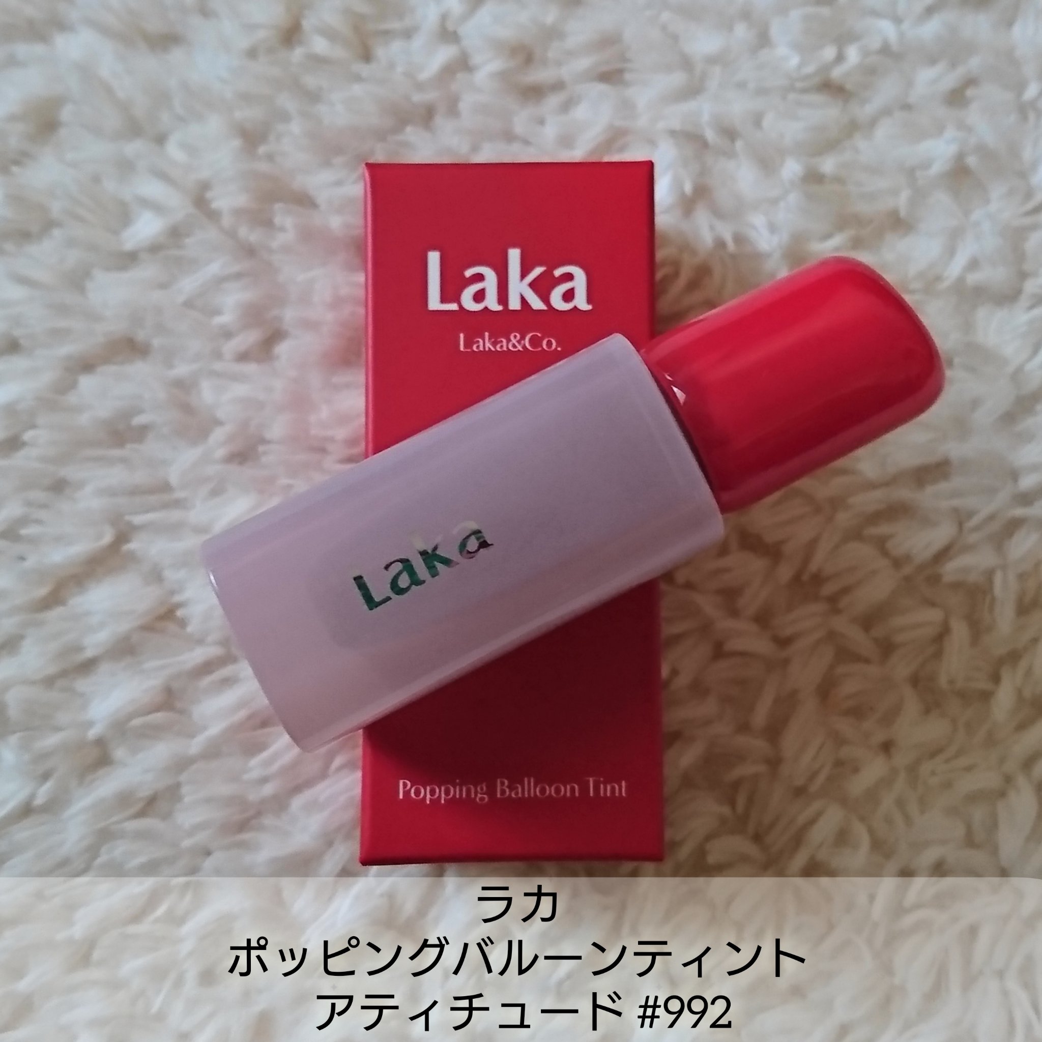 \ふわっと軽いのに、しっかり発色/LAKAポッピングバルーンティント(992アティチュード)🎈🎈⸒⸒最初はさらっとしたテクスチャーなのに、唇にのせるとじゅわっと広がってムラになりにくいのが◎992アティチュードは、ほんのりくすんだローズピンク...