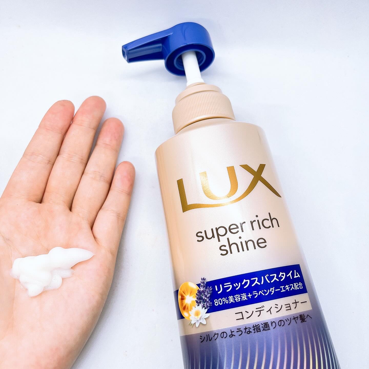 ラックス スーパーリッチシャイン リラックスナイトケア まとまりシャンプー・まとまりコンディショナーをお試しさせていただきました。深みのある青色のデザインが素敵。シャンプーはまろやかなとろみのあるテクスチャーで、泡立ちが良いです。優しくシャン...