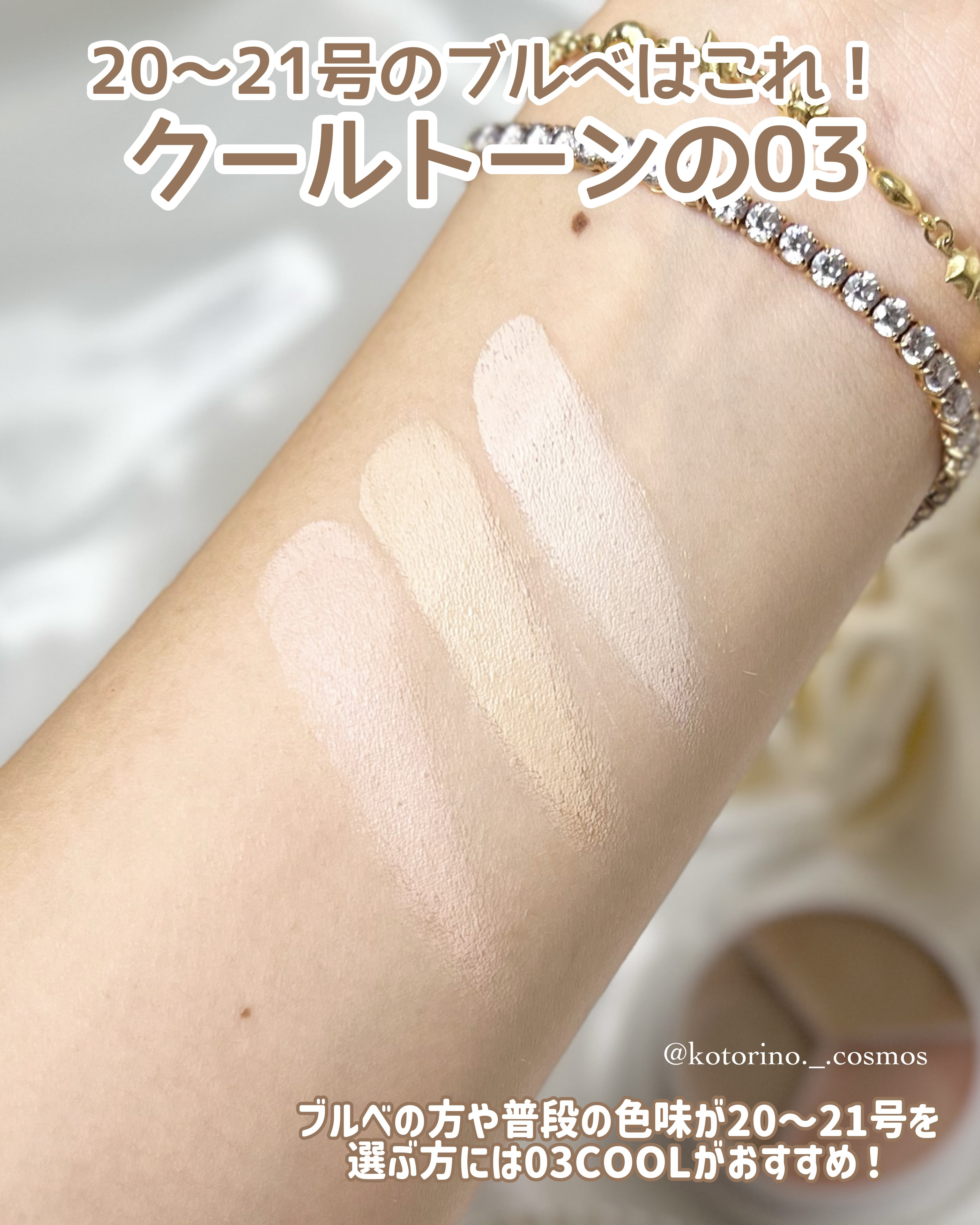 - <クール> [アイボリーベージュ] トリ(カプリル酸/カプリン酸)グリセリル、酸化チタン、ポリイソブテン、メタクリル酸メチルクロスポリマー、ネオペンタン酸イソデシル、マイカ、水添ヒマシ油、エチルヘキサン酸セテアリル、リンゴ酸ジイソステアリル、ビスジグリセリルポリアシルアジペート-2、パラフィン、酸化鉄、1,2-ヘキサンジオール、セスキオレイン酸ソルビタン、水酸化Al [ナチュラルベージュ] トリ(カプリル酸/カプリン酸)グリセリル、酸化チタン、メタクリル酸メチルクロスポリマー、ポリイソブテン、ネオペンタン酸イソデシル、水添ヒマシ油、エチルヘキサン酸セテアリル、酸化鉄、ヘキサ(ヒドロキシステアリン酸/ステアリン酸/ロジン酸)ジペンタエリスリチル、リンゴ酸ジイソステアリル、マイカ、パラフィン、水酸化Al、1,2-ヘキサンジオール、セスキオレイン酸ソルビタン [ピンクベージュ] トリ(カプリル酸/カプリン酸)グリセリル、酸化チタン、ポリイソブテン、メタクリル酸メチルクロスポリマー、ネオペンタン酸イソデシル、マイカ、水添ヒマシ油、エチルヘキサン酸セテアリル、リンゴ酸ジイソステアリル、ビスジグリセリルポリアシルアジペート-2、酸化鉄、パラフィン、1,2-ヘキサンジオール、セスキオレイン酸ソルビタン、水酸化Al [1%未満の共通成分] 水、BG、加水分解ヒアルロン酸、セラミドNP、トリュフエキス、ツベルマグナツムエキス、エチルヘキシルグリセリン、ヒアルロン酸Na、グリセリン、グリシン、セリン、グルタミン酸、アスパラギン酸、ロイシン、アラニン、リシン、アルギニン、チロシン、フェニルアラニン、トレオニン、バリン、プロリン、イソロイシン、ヒスチジン、システイン、メチオニン、マイクロクリスタリンワックス、メチコン、カプリリルグリコール、スクワラン、パンテノール、乳酸桿菌培養溶解質、BHT、糖脂質、オレイン酸ポリグリセリル-10、レスベラトロール、水添レシチン <ニュートラル> [ダークベージュ]トリ(カプリル酸/カプリン酸)グリセリル、酸化チタン、メタクリル酸メチルクロスポリマー、酸化鉄、ポリイソブテン、ネオペンタン酸イソデシル、水添ヒマシ油、エチルヘキサン酸セテアリル、ヘキサ(ヒドロキシステアリン酸/ステアリン酸/ロジン酸)ジペンタエリスリチル、リンゴ酸ジイソステアリル、パラフィン、マイカ、水酸化Al、1,2-ヘキサンジオール、セスキオレイン酸ソルビタン、BHT [ナチュラルベージュ]トリ(カプリル酸/カプリン酸)グリセリル、酸化チタン、ポリメタクリル酸メチル、ポリイソブテン、ネオペンタン酸イソデシル、水添ヒマシ油、エチルヘキサン酸セテアリル、酸化鉄、ヘキサ(ヒドロキシステアリン酸/ステアリン酸/ロジン酸)ジペンタエリスリチル、リンゴ酸ジイソステアリル、マイカ、パラフィン、水酸化Al、1,2-ヘキサンジオール、セスキオレイン酸ソルビタン [ライトベージュ]トリ(カプリル酸/カプリン酸)グリセリル、酸化チタン、メタクリル酸メチルクロスポリマー、ポリイソブテン、ネオペンタン酸イソデシル、水添ヒマシ油、エチルヘキサン酸セテアリル、マイカ、ヘキサ(ヒドロキシステアリン酸/ステアリン酸/ロジン酸)ジペンタエリスリチル、リンゴ酸ジイソステアリル、酸化鉄、パラフィン、水酸化Al、1,2-ヘキサンジオール、セスキオレイン酸ソルビタン、BHT [1%未満の共通成分]水、BG、グリセリン、加水分解ヒアルロン酸、セラミドNP、トリュフエキス、ツベルマグナツムエキス、エチルヘキシルグリセリン、ヒアルロン酸Na、グリシン、セリン、ロイシン、アラニン、リシン、アルギニン、チロシン、フェニルアラニン、プロリン、トレオニン、バリン、イソロイシン、ヒスチジン、メチオニン、システイン、マイクロクリスタリンワックス、カプリリルグリコール、メチコン、スクワラン、パンテノール、乳酸桿菌培養溶解質、糖脂質、オレイン酸ポリグリセリル-10、グルタミン酸、レスベラトロール、水添レシチン、アスパラギン酸