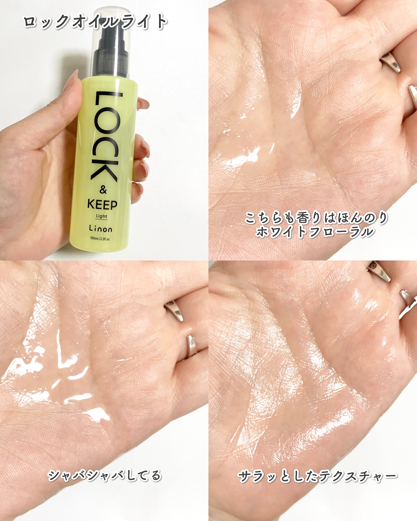 Linon🩷ロックオイル💚ロックオイルライトアイロンの熱効果を高めるヒートアクティブ処方で、「ロック&キープ」🔥5種のヒートケア成分が入ってて、ダメージ補修もできる!・ロングヘアで3-5プッシュ程度(毛量少なめは2-3プッシュ)・ボブヘアで2...