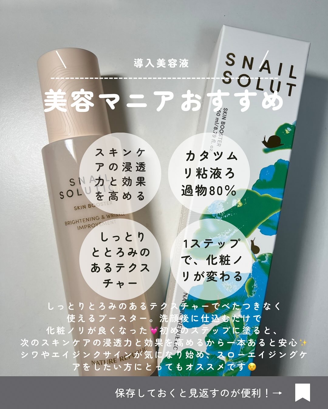 ✼••••✼NATUREREPUBLICスネイルソリューションスキンブースター✼••••✼スキンケアの最初のステップに使用!次のスキンケアの浸透力と効果を高める導入美容液✨カタツムリ粘液ろ過物80%、パンテノール、シカ成分配合で、栄養をチャー...