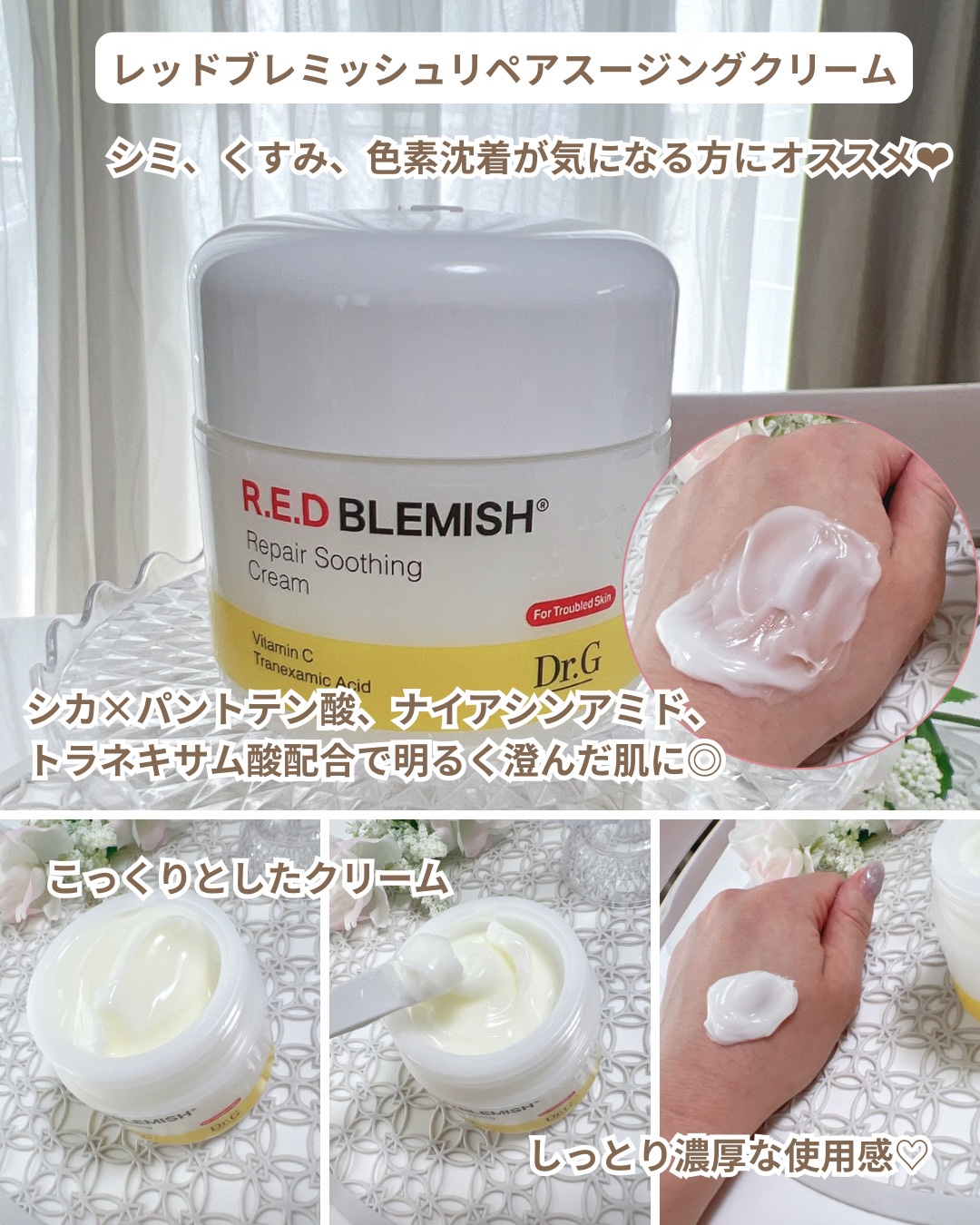 Dr.Gのクリーム4種類を使ってみました😍レッドブレミッシュクリアスージングクリームレッドブレミッシュクリアモイスチャークリームレッドブレミッシュリペアスージングクリームバクチオールポアジェットクリーム@dr.g_official_jpまず大...