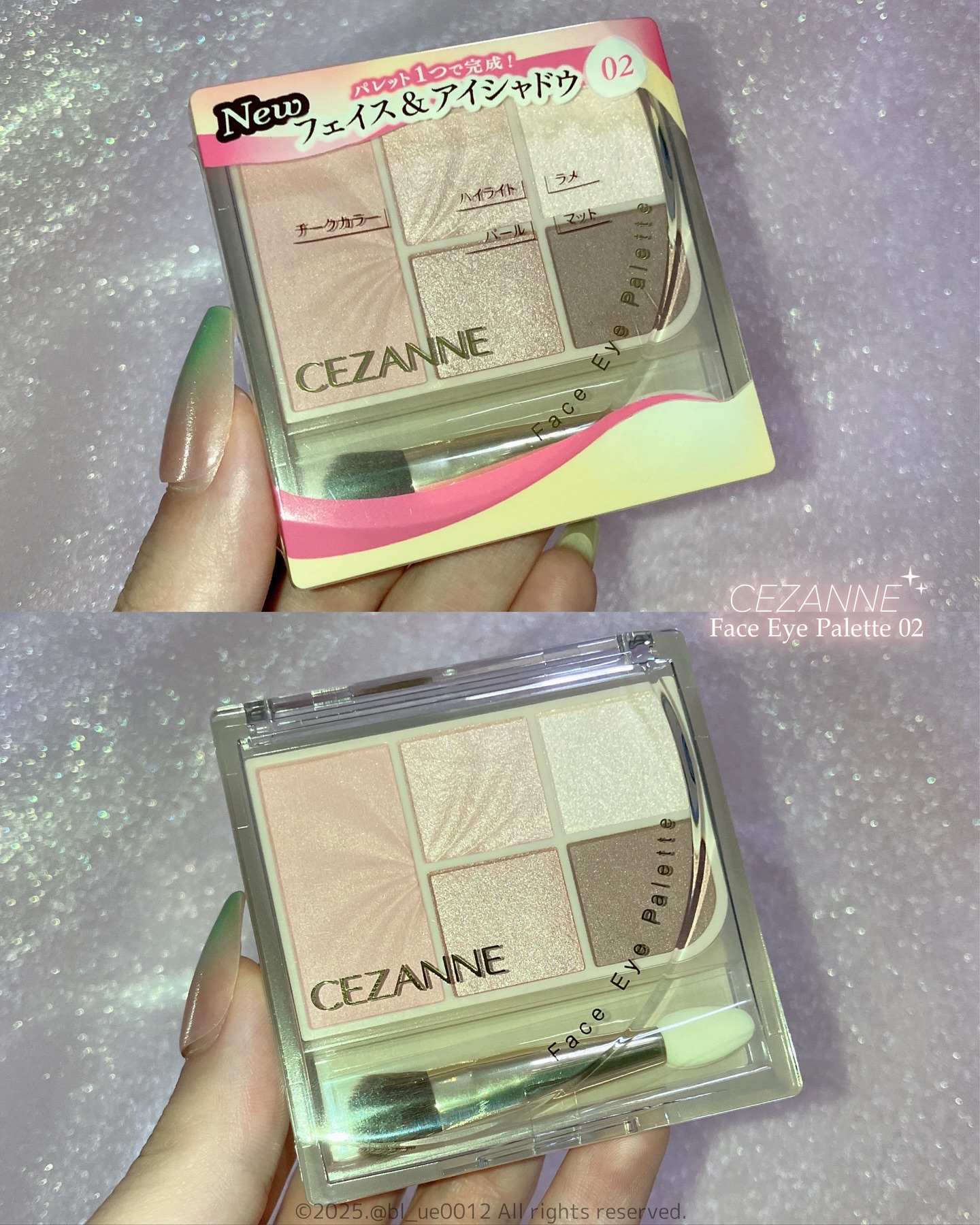 白みをたっぷり含んだカラーがかわいい💜 03 ラベンダープレジャー🫧 上段中央のシマーなラベンダービームのハイライトカラーがとても綺麗だった🥹🤍 トーンを合わせたカラー構成で異なる質感を楽しめるそんなパレットになっています💗