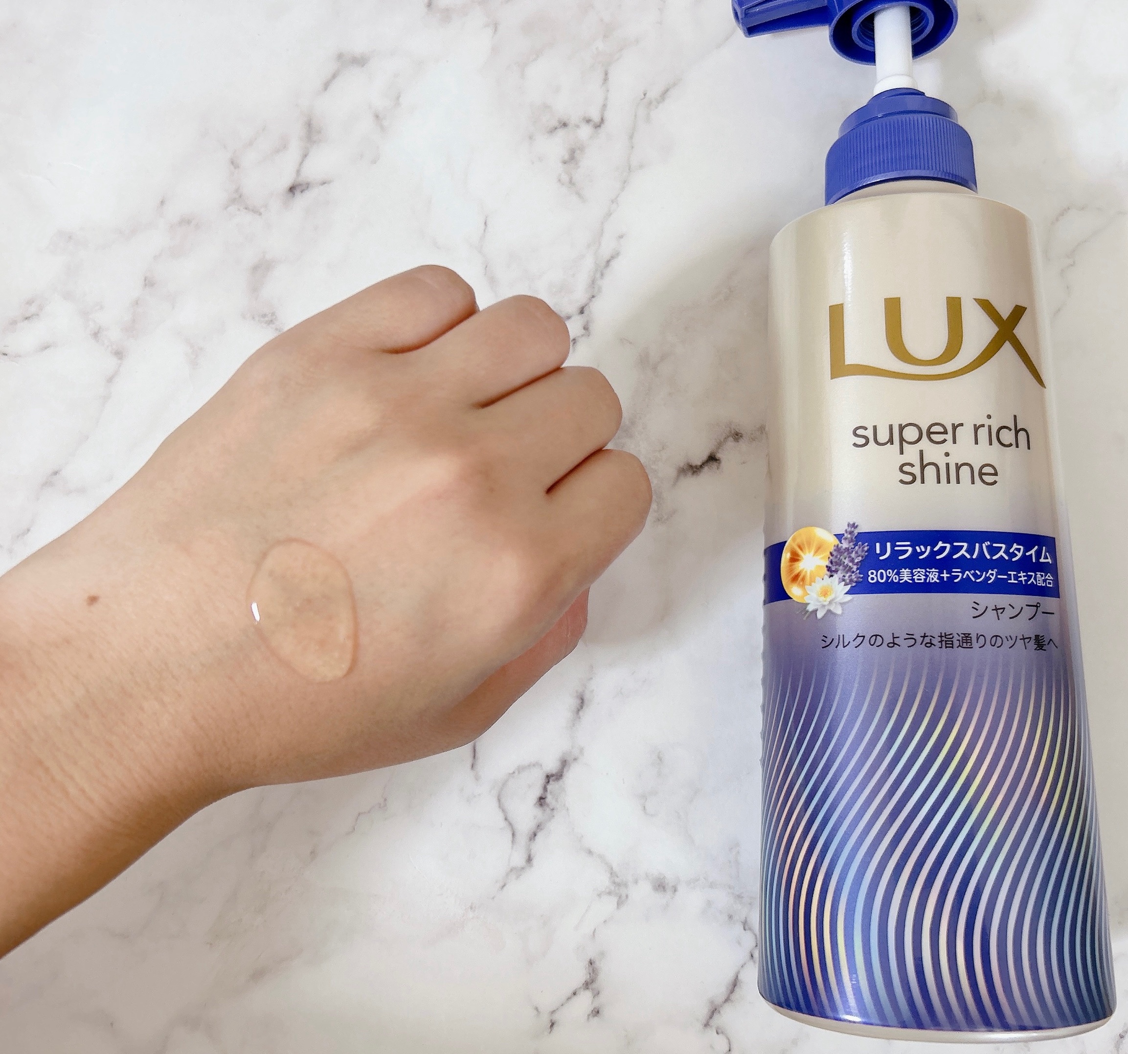 ラックス スーパーリッチシャイン リラックスナイトケア まとまりシャンプー・まとまりコンディショナーをお試しさせていただきました。深みのある青色のデザインが素敵。シャンプーはまろやかなとろみのあるテクスチャーで、泡立ちが良いです。優しくシャン...