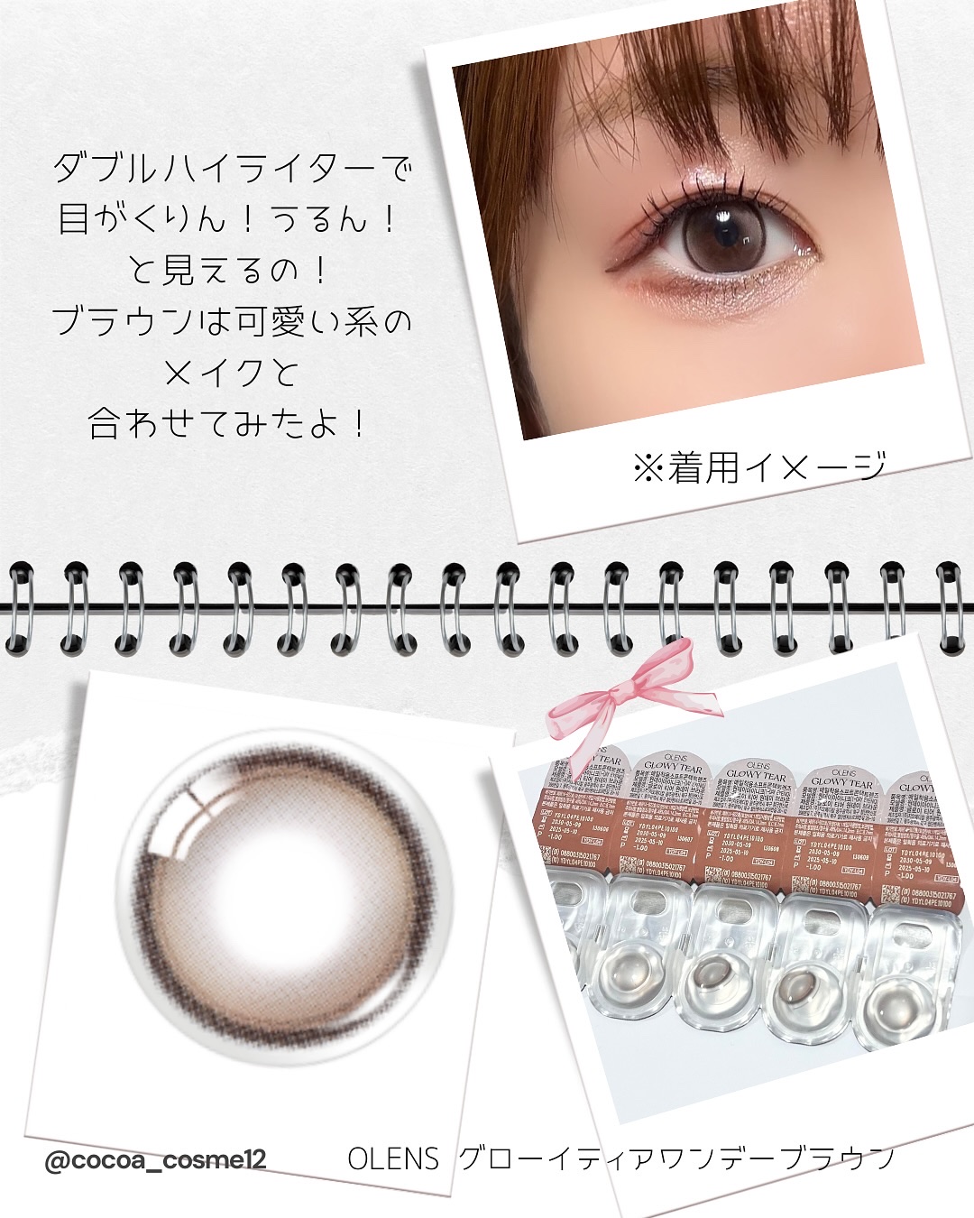 \うるうるカラコン/OLENSGlowyTear1DayBrown/GrayDoubleTint1DayBrown/Gray◆GlowyTear1Day新作は上下で太さの違ううるうるダブルハイライターが可愛すぎる🤍極微細ダブルハイライターと...