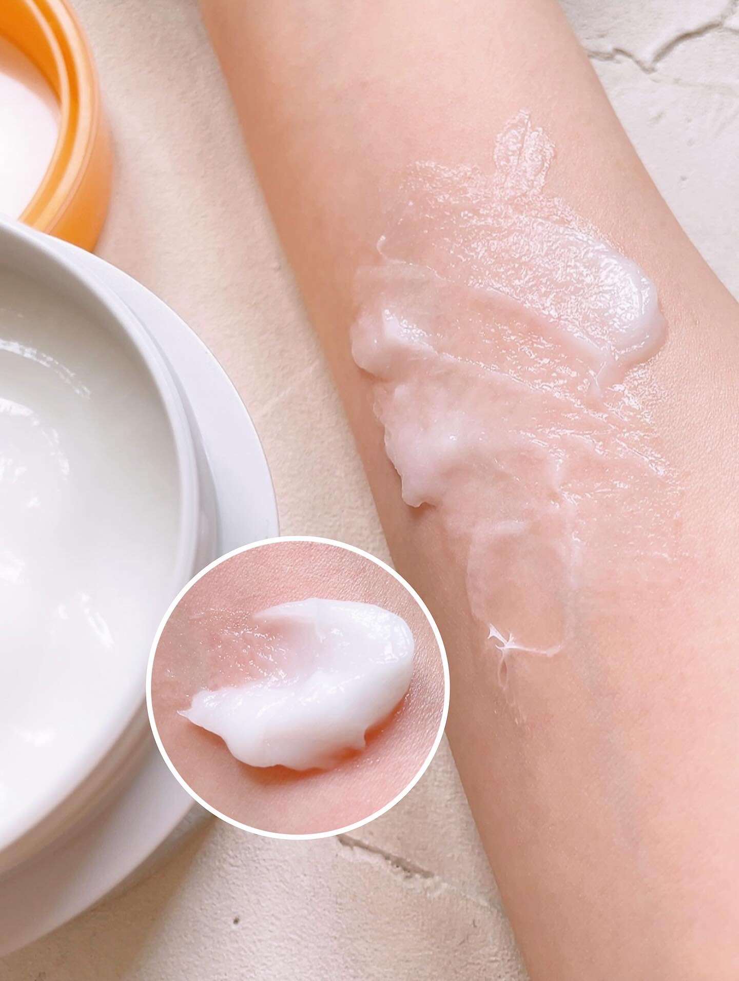 - <180g> 水、グリセリン、ステアリルアルコール、ジメチコン、ステアロキシプロピルジメチルアミン、乳酸、DPG、ヒマワリ種子油、ラノリン脂肪酸、ジラウラミドグルタミドリシンNa、γ-ドコサラクトン、ビスメトキシプロピルアミドイソドコサン、加水分解ケラチン(羊毛)、加水分解シルク、加水分解コラーゲン、加水分解コンキオリンタンパク、シア脂油、リンゴ酸、イソステアリルグリセリル、ポリグリセリン-3、スクワラン、ヒアルロン酸Na、ローヤルゼリーエキス、アモジメチコン、ビスセテアリルアモジメチコン、ラウレス-16、セテアレス-7、セテアレス-25、ポリクオタニウム-39、ポリアクリル酸、ポリアクリル酸Na、セバシン酸ジエチル、ベンジルアルコール、エタノール、BG、香料