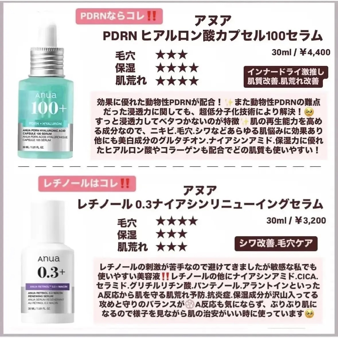 Anua レチノール0.3 ナイアシンリニューイングセラム | 3,200円 |