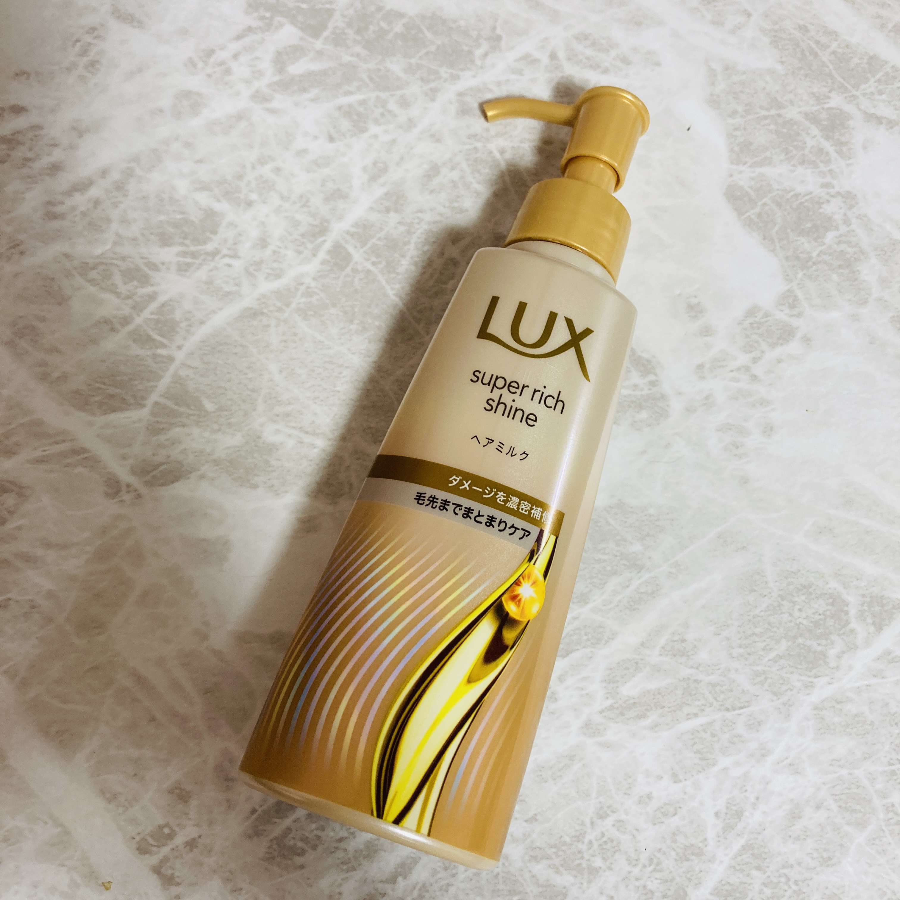 ラックススーパーリッチシャインダメージリペア補修ヘアミルク金のラックス!ジューシーフルーツの香りとフローラル系の香りが甘くてさわやか!とろりとしたテクスチャーのミルクはさらりと髪になじませやすいです。タオルドライ後の髪にすんなりなじんでしっと...