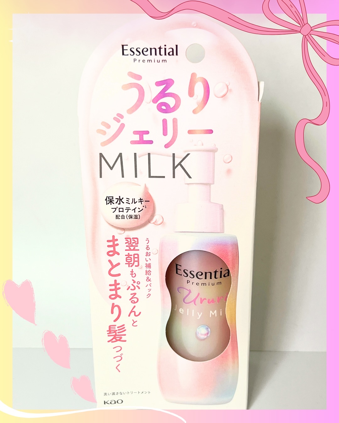 EssentialpremiumうるりジェリーMILK(洗い流さないトリートメント)ぷるんとまとまり髪つづく新感覚ジェリーミルクが登場✨うるおいチャージ&一晩中パックで翌朝もぷるんとまとまる髪に✨ブローでくせを伸ばしやすく、うねり・広がりを抑...