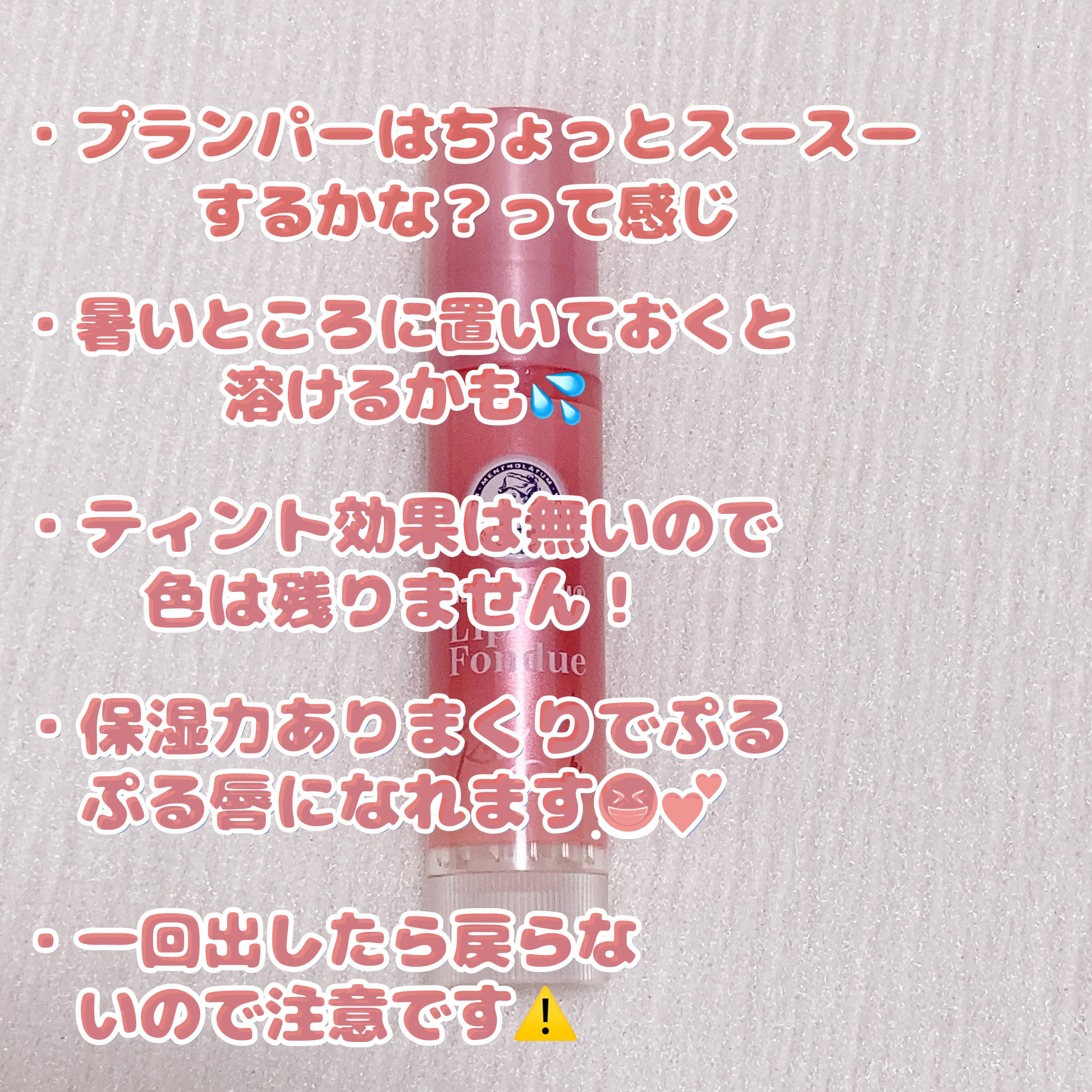 - とろけだすフォンデュのようなテクスチャーの色付きリッププランパー。 プランプ効果でボリュームアップリップへ導き、ぼってりとしたツヤ感とシアー感のある色づきを叶えます。