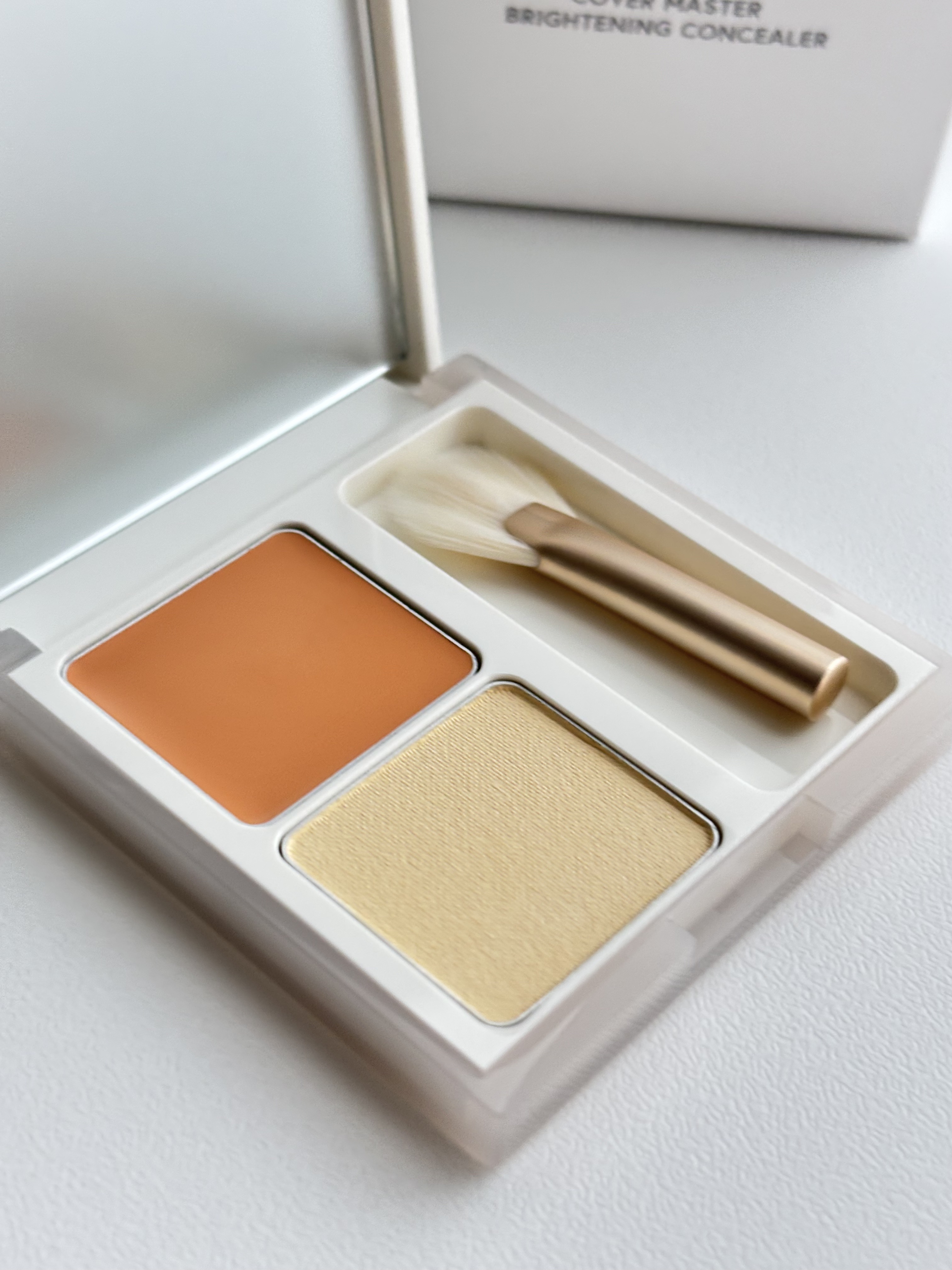 上のクリームコンシーラーを手持ちのブラシでのせてトントン馴染ませてから、下のパウダーを付属の扇型ブラシでふんわりのせると目元をパッと明るく見せてくれて涙袋も強調してくれるの本当に感動した...!! 涙袋のベースにも◎ 目元のクマやくすみが気になる方に🥺✨ 11/15~new🪄 ぜひ気になった方は、チェックしてみてください🫶🏻️💓