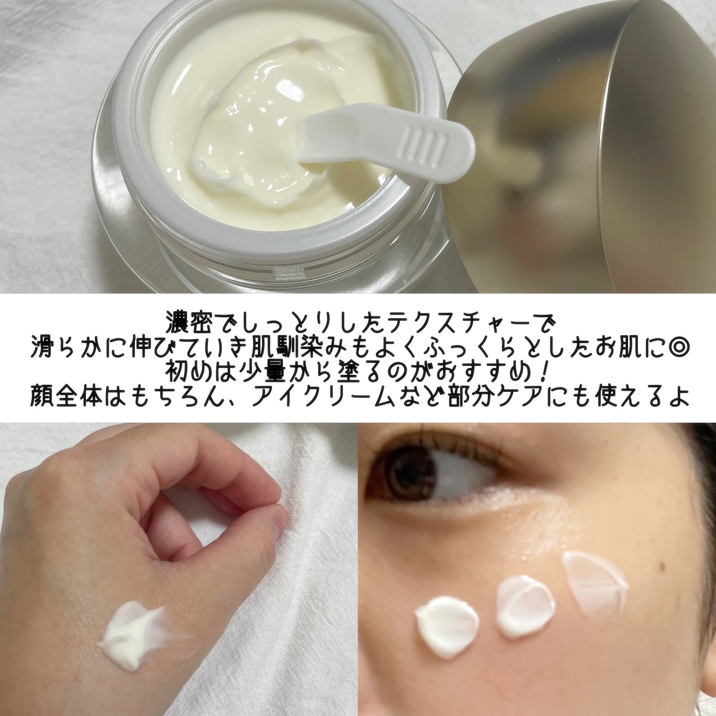 薬用クリームだからなんとなく安心して使えて めちゃくちゃ高保湿で 乾燥肌の私にはピッタリだった🥹🤍 「天然型ビタミンE」が配合されてるんだけど これは肌の血行を促進し、肌に必要な栄養素を補給しながら ターンオーバーを整えてくれるんだって🫣 そして、私の大好きな成分のひとつの 「グリチルリチン酸ニカリウム」で肌あれを抑えてくれる◎ 最初はボディの乾燥が気になる部分にだけ使ってたけど サイトを確認したらお顔の使用も推奨されてて 顔の頬や鼻のあたりは血行が行きわたりにくい部位だから そこに塗るといいみたい👀🤍 もうかなり寒くなって保湿アイテム欠かせないから プチプラで良さそうなやつ探しまくってる🥹