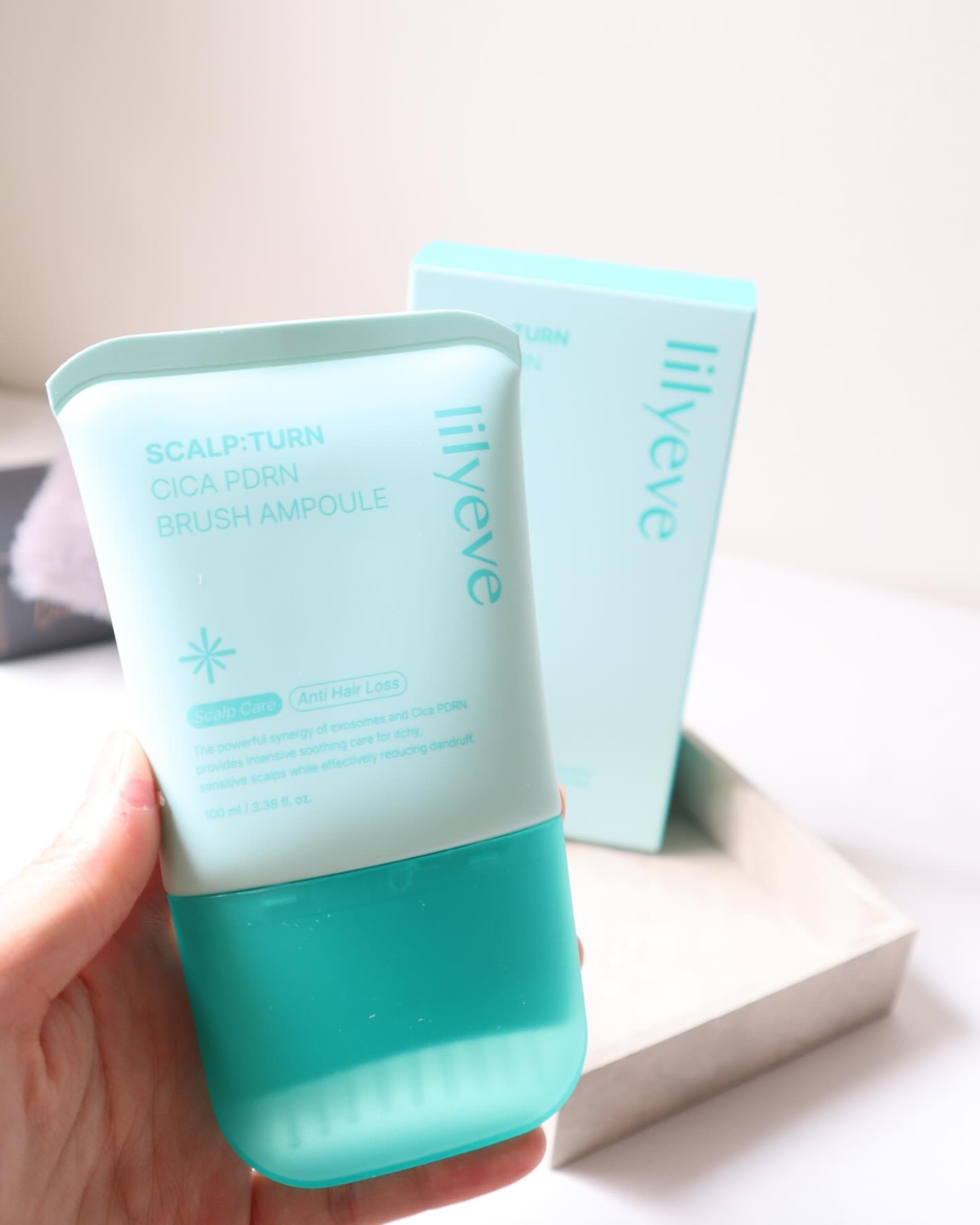 \シカ*1×PDRN*1で頭皮を集中ケア/フケ、かゆみを抑える、脂っぽさが気になる頭皮にも使いやすい処方の、頭皮を健やかに保つアンプル【リリーイブ スカルプターンヘアアンプル】キャップを開けると38本の低刺激ブラシがお目見え🤭整肌成分を含んだ...