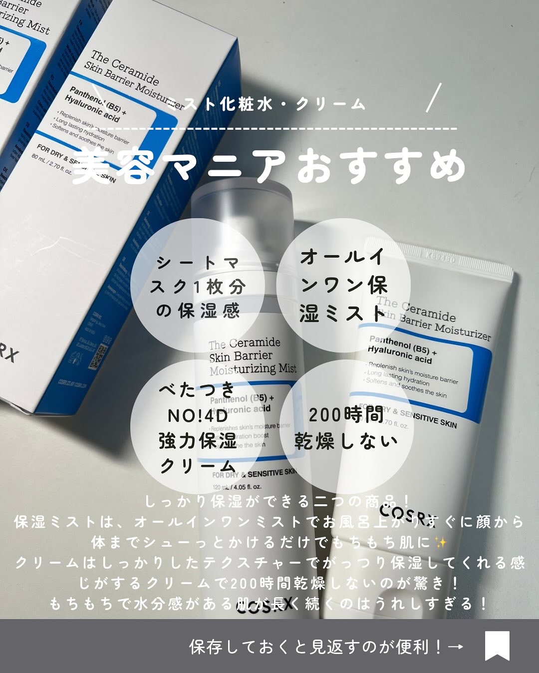@cosrx_jp#RXザセラミド肌バリア保湿クリーム#RXザセラミド肌バリア保湿ミスト#PRCOSRX様よりプレゼントしていただきました。(1年分プレゼント・8月分)クリームはなめらかで柔らかいテクスチャー。伸びもよくスーッと肌に馴染みます...