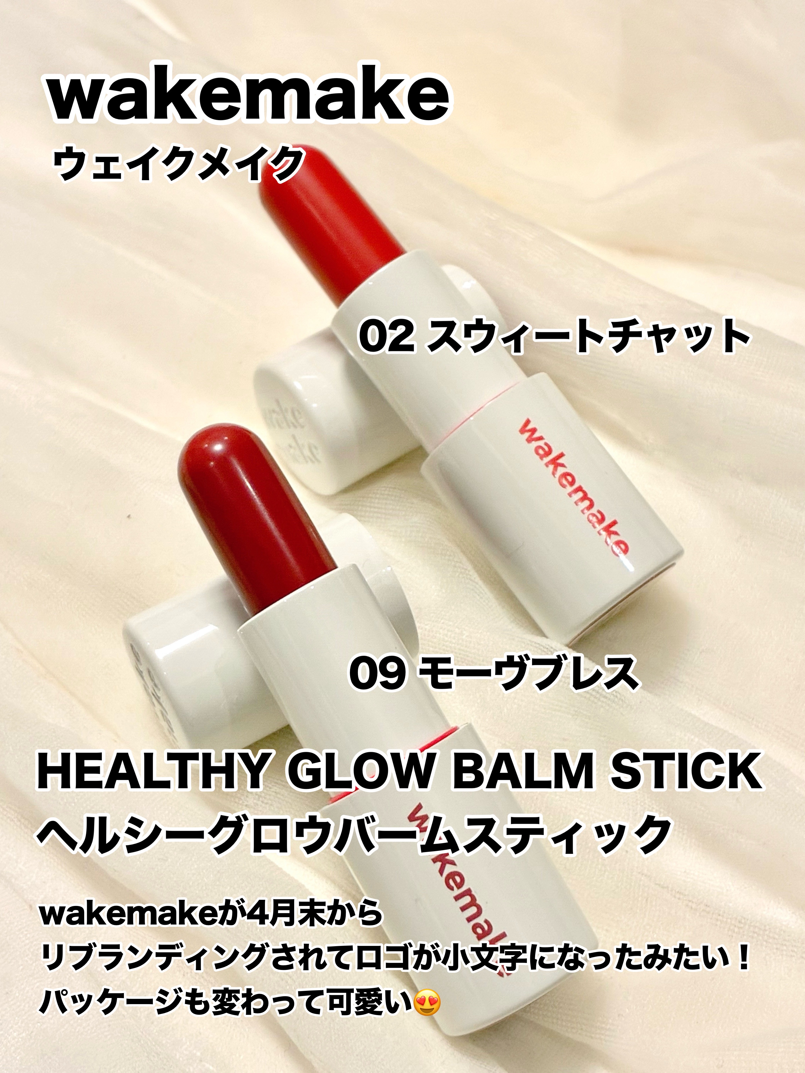 wakemakeHEALTHYGLOWBALMSTICK02スウィートチャット09モーヴブレスwakemakeは4月末からリブランディングしてロゴが小文字に!パケも可愛い🤍Amazon・全国バラショ(一部店舗除く)で販売中!唇がキレイに見える...
