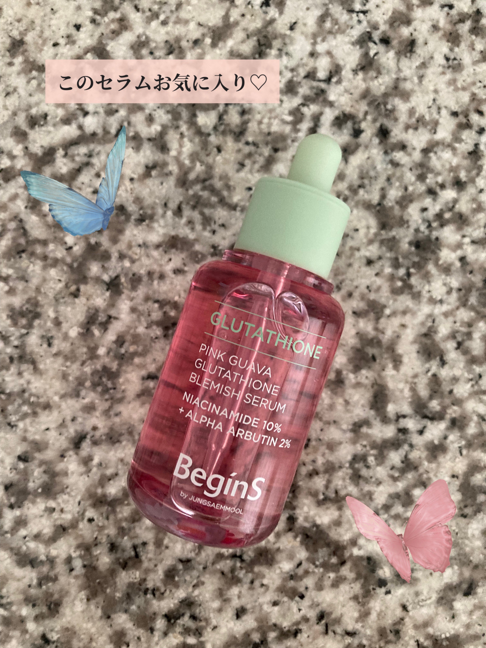 BeginS(ビギンス)ピンクグァバグルタチオン痕跡セラム💁♀️純度99%リポソームグルタチオン(100ppm)配合・ナイアシンアミド10%の高含量処方でシミ・跡をトータルケアしてくれる跡集中ターゲティング☝🏻お肌にすっと馴染んでベタつかな...