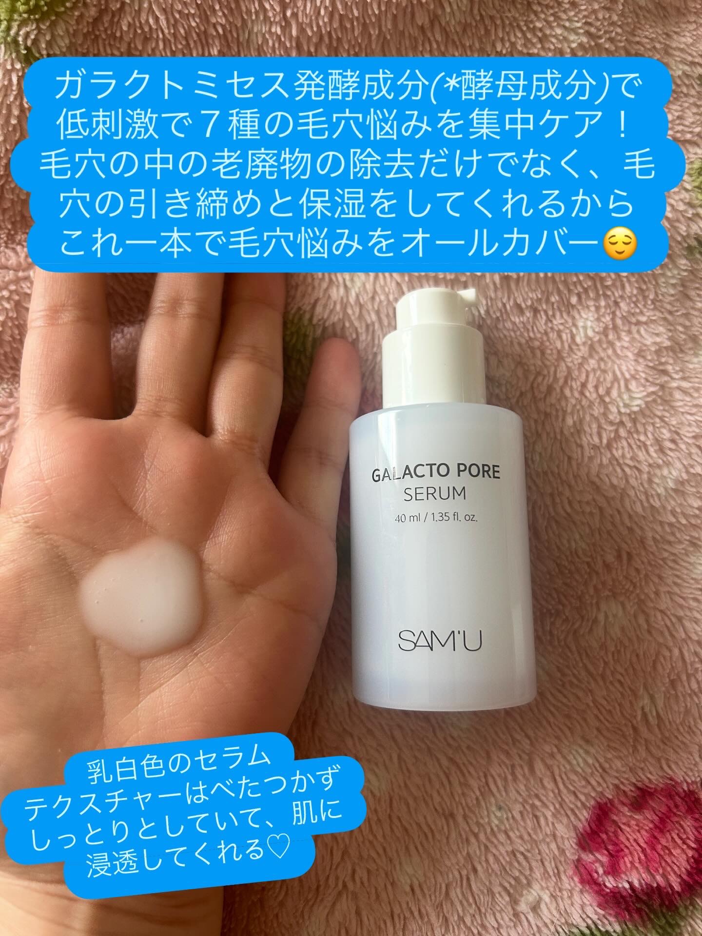サミュのガラクトポアセラムを試してみたよ!肌キメを整えたい人や毛穴に悩んでる人にオススメ♡AHA+BHA+PHA配合で優しく毛穴に詰まった角質ケアと毛穴汚れを除去してくれる😍ガラクトミセスやツボクサエキス配合で、あらゆる毛穴悩みをカバー👀セラ...