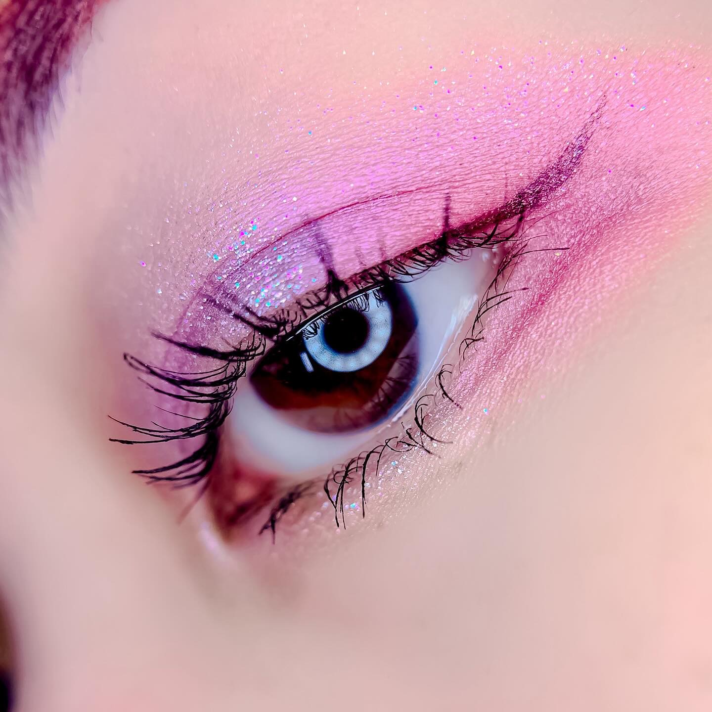 ピンクにグレージュも良いですね👌💗 今日は可愛らしい感じにしてみました💕 上下瞼黒目〜目頭側にラメを塗ってキラキラさせております🤩 目尻はマットのピンクを濃いめに重ねて💗 グレージュのアイライナーと相性◎