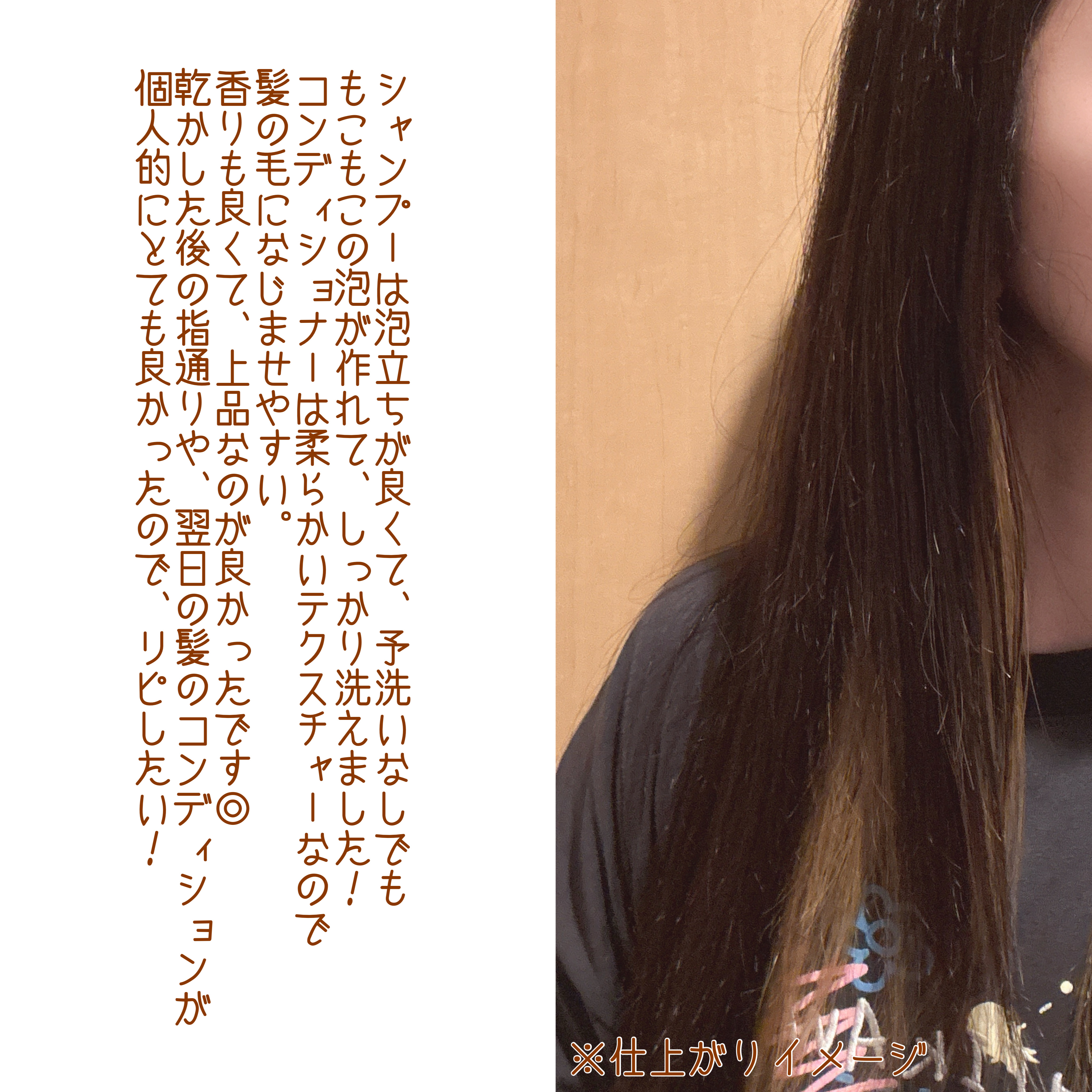 | ツヤのあるしっとりとまとまった仕上がり。とってもいい香りで毎日お風呂に広がる香りを楽しんでバスタイムを過ごしています。 | 詳細を見る | ||
