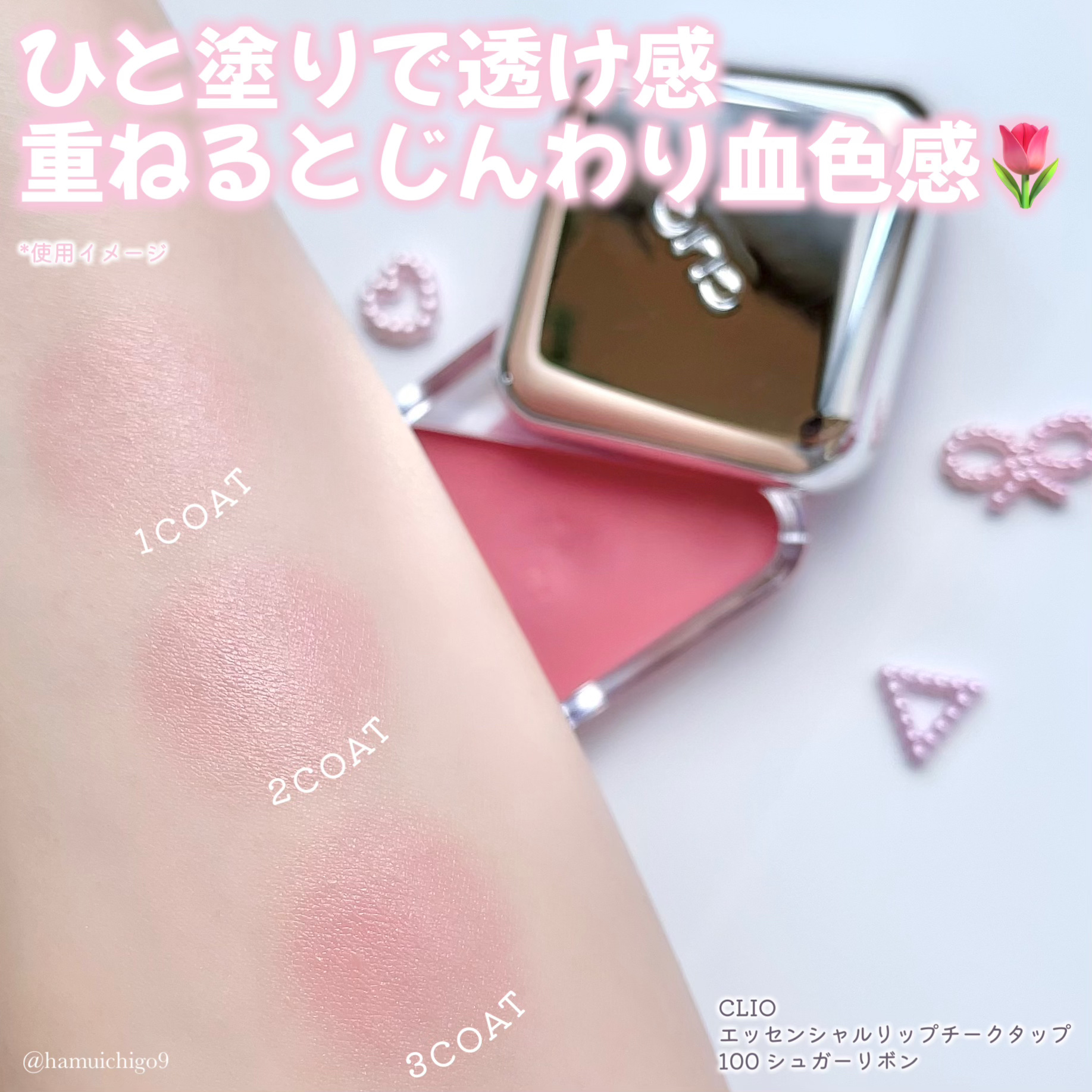 \甘めピンクの新色🩷/CLIO/クリオ◻︎エッセンシャルリップチークタップ「咥えるチーク」で話題を呼んだリップチークから、日本限定の新色が登場!〈100シュガーリボン〉ふんわり甘く、きゅんをひとさじしたようなローズピンク美容系インフルエンサー...