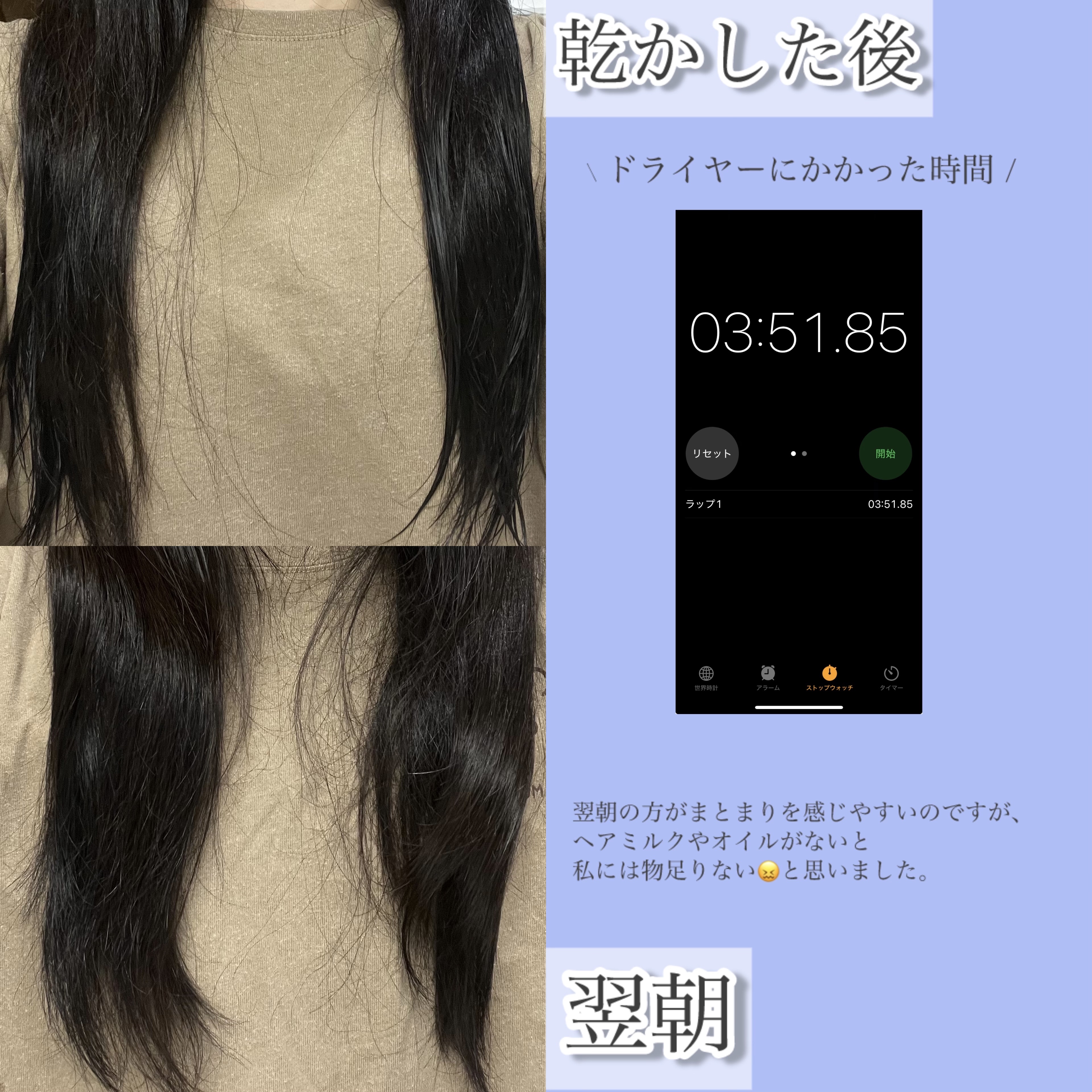 | ヘアケア・スタイリングランキング第64位 | 洗い流す時からサラサラ。 ドライヤー後に感動。髪の毛1本1本がパラッパらのサラッサラになるの!!! | 詳細を見る | |