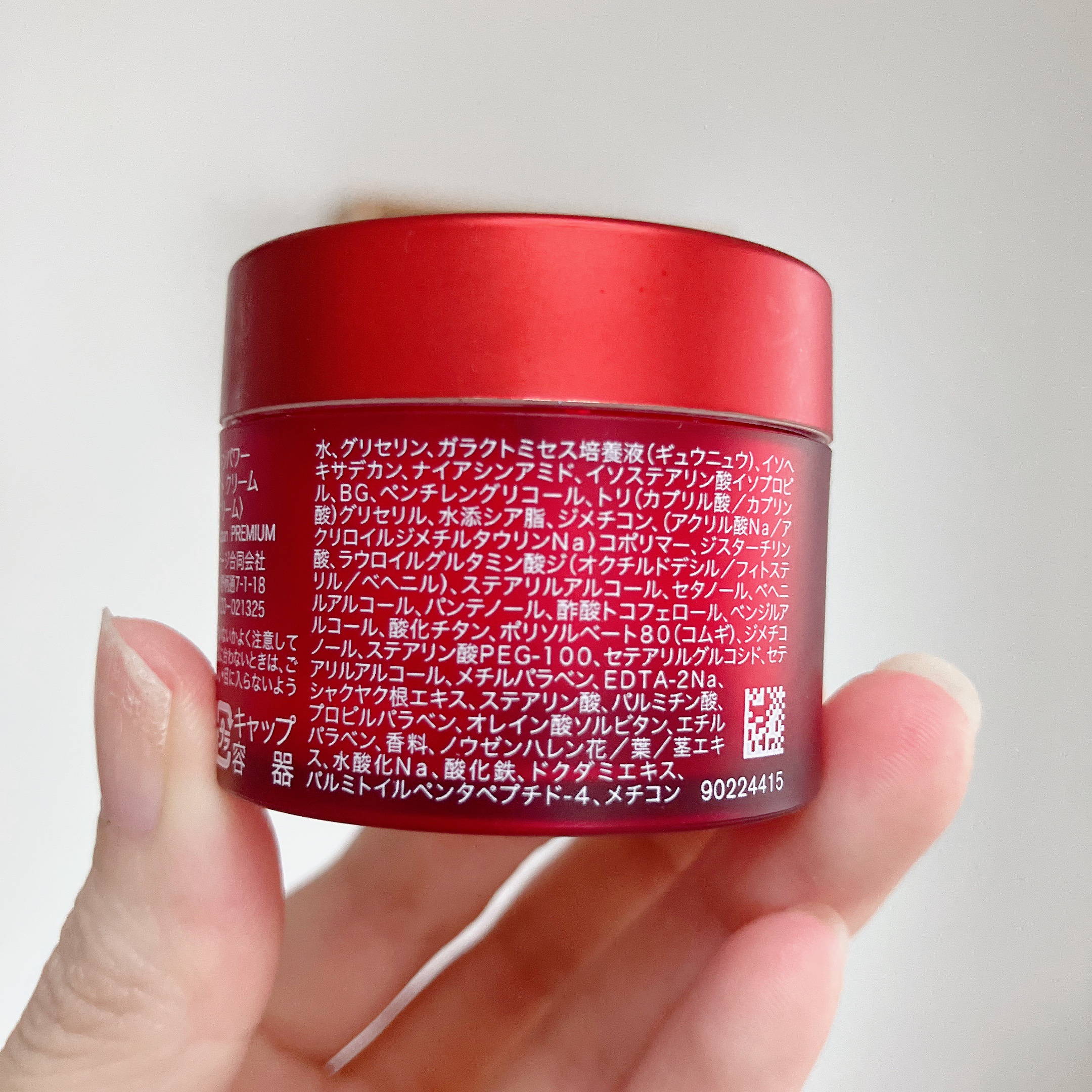- < 50g> 水、グリセリン、ガラクトミセス培養液(ギュウニュウ)、イソヘキサデカン、ナイアシンアミド、イソステアリン酸イソプロピル、BG、ペンチレングリコール、トリ(カプリル酸/カプリン酸)グリセリル、水添シア脂、ジメチコン、(アクリル酸Na/アクリロイルジメチルタウリンNa)コポリマー、ジスターチリン酸、ラウロイルグルタミン酸ジ(オクチルドデシル/フィトステリル/ベヘニル)、ステアリルアルコール、セタノール、ベヘニルアルコール、パンテノール、酢酸トコフェロール、ベンジルアルコール、酸化チタン、ポリソルベート80(コムギ)、ジメチコノール、ステアリン酸PEG-100、セテアリルグルコシド、セテアリルアルコール、メチルパラベン、EDTA-2Na、シャクヤク根エキス、ステアリン酸、パルミチン酸、プロピルパラベン、オレイン酸ソルビタン、エチルパラベン、香料、ノウゼンハレン花/葉/茎エキス、水酸化Na、酸化鉄、ドクダミエキス、パルミトイルペンタペプチド-4、メチコン <80g> 水、グリセリン、ガラクトミセス培養液(ギュウニュウ)、イソヘキサデカン、ナイアシンアミド、イソステアリン酸イソプロピル、BG、ペンチレングリコール、トリ(カプリル酸/カプリン酸)グリセリル、水添シア脂、ジメチコン、(アクリル酸Na/アクリロイルジメチルタウリンNa)コポリマー、ジスターチリン酸、ラウロイルグルタミン酸ジ(オクチルドデシル/フィトステリル/ベヘニル)、ステアリルアルコール、セタノール、ベヘニルアルコール、パンテノール、酢酸トコフェロール、ベンジルアルコール、酸化チタン、ポリソルベート80(コムギ)、ジメチコノール、ステアリン酸PEG-100、セテアリルグルコシド、セテアリルアルコール、メチルパラベン、EDTA-2Na、シャクヤク根エキス、ステアリン酸、パルミチン酸、プロピルパラベン、オレイン酸ソルビタン、エチルパラベン、香料、ノウゼンハレン花/葉/茎エキス、水酸化Na、酸化鉄、ドクダミエキス、パルミトイルペンタペプチド-4、メチコン