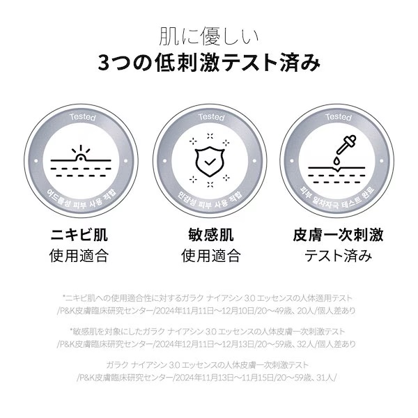 - ・manyoの独自成分!3倍*¹高濃縮でより強力な3世代ガラク 電気石を発酵器に添加し、微生物の成長に刺激を与えガラクトミセス菌の活性度増加!生長性の高いガラクトミセス菌株からガラクトミセス培養液*²を抽出し、肌のキメケアとともに透明感*³のあるお肌へ *¹ 3倍は高濃縮工程前、初期のガラクトミセス培養液(皮膚コンディショニング剤)と比較した場合 *² 皮膚コンディショニング剤 *³ キメが整った肌が与える印象のこと ・肌トーンケア*⁴、毛穴ケア*⁵、肌キメケア*⁶まで、保湿効果 3世代ガラク(Galactomy Active™ 7)と、ナイアシンアミド²配合で保湿成分をより強化し、くすんだ肌トーン*⁸から肌キメ、毛穴*⁵までケアします。 *⁴ 保湿により肌にツヤを与え明るい印象に見せること *⁵ 保湿することで肌をなめらかに整えツヤを与えることで毛穴を目立たなくすること *⁶ キメが整った素肌へ導くお手入れのこと *⁷ ガラクトミセス培養液、BG(どちらも皮膚コンディショニング剤)、1,2-ヘキサンジオール(溶剤) *⁸ 乾燥による ・水のようなさらっとしたテクスチャーで、べたつかず角質層まですっと浸透 保湿成分配合のウォータリーテクスチャーで、使用感は既存の「ガラク ナイアシン 2.0 エッセンス」と同じくさらっとした水のようなテクスチャー。角質層まで素早く浸透!べたつかない使用感で使いやすくて、角質層の奥まで潤い、表面はなめらかで整った肌へ 3月17日(月)からオフラインのバラエティショップで販売 3月24日(月)よりQoo10公式、楽天公式ショップで販売