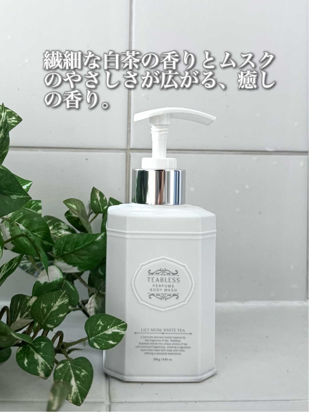 TEABLESSリリームスクホワイトティーボディソープ\バスルームで迎える小さなティータイム/白茶の繊細な香りにムスクのやさしさが重なり、深呼吸したくなるような心地よさを広げてくれるボディソープです𓂃🫧植物由来の成分を取り入れた処方で、低刺...