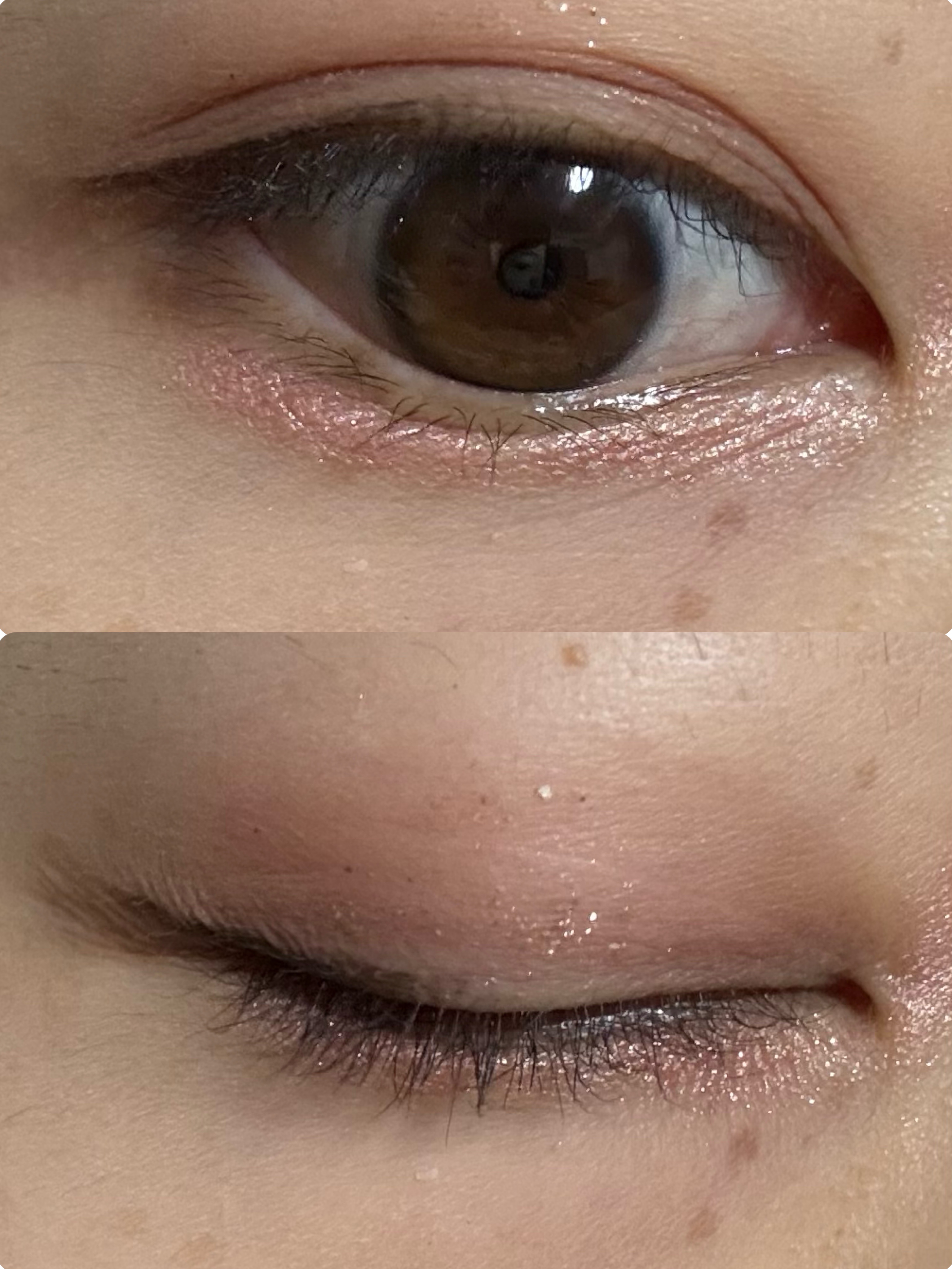 使ってみて後悔!やっぱ口コミが良いだけあって ラメが綺麗!他のにはないラメ感で好き もっと早く買っとけば良かった😶 しっかりまぶたに密着してくれ つけるだけで一気に華やかなツヤ感ある目元になって感動 まぶたに使うのはもちろん涙袋に使ってもキラキラして可愛かった