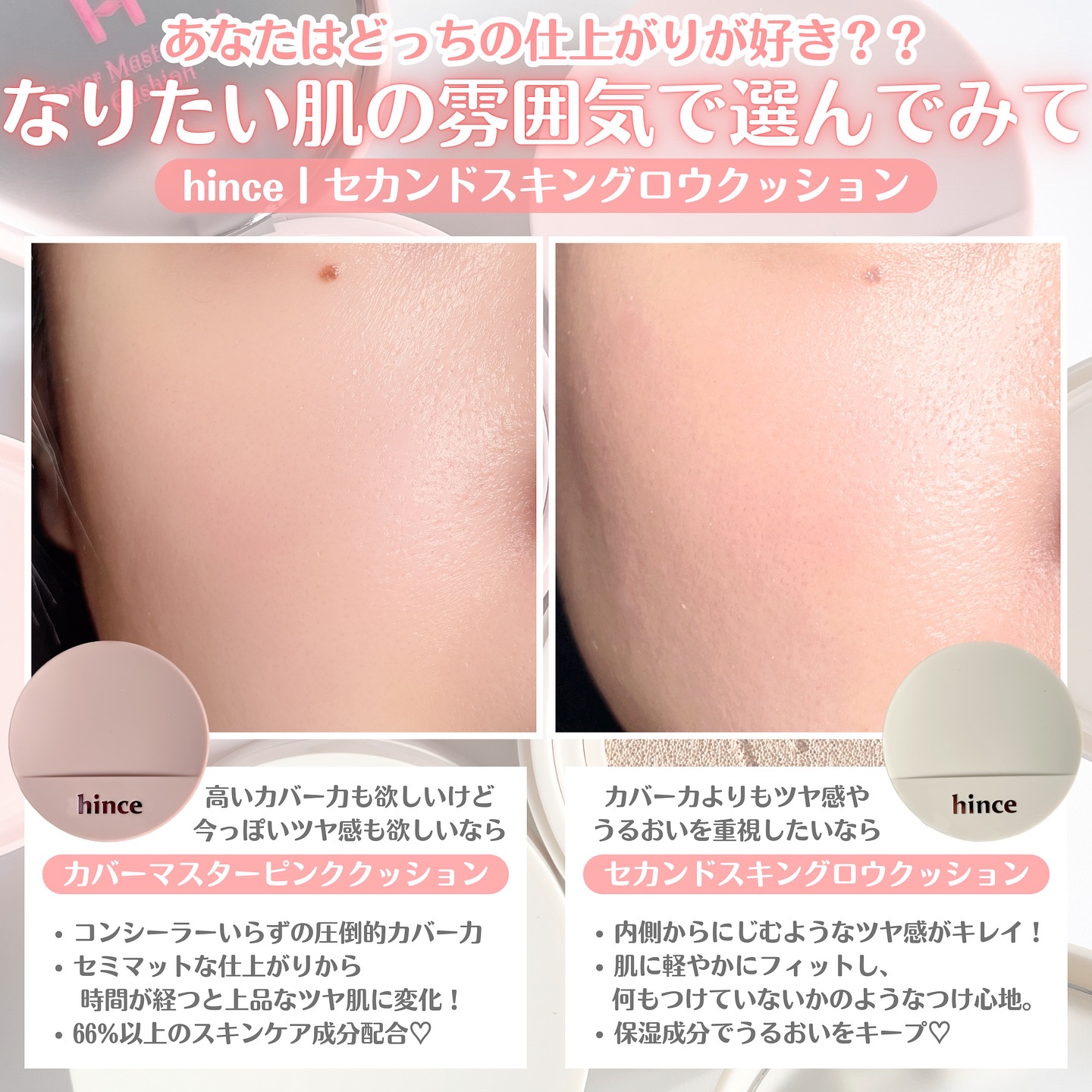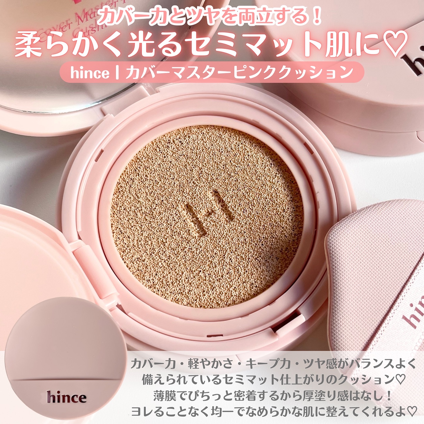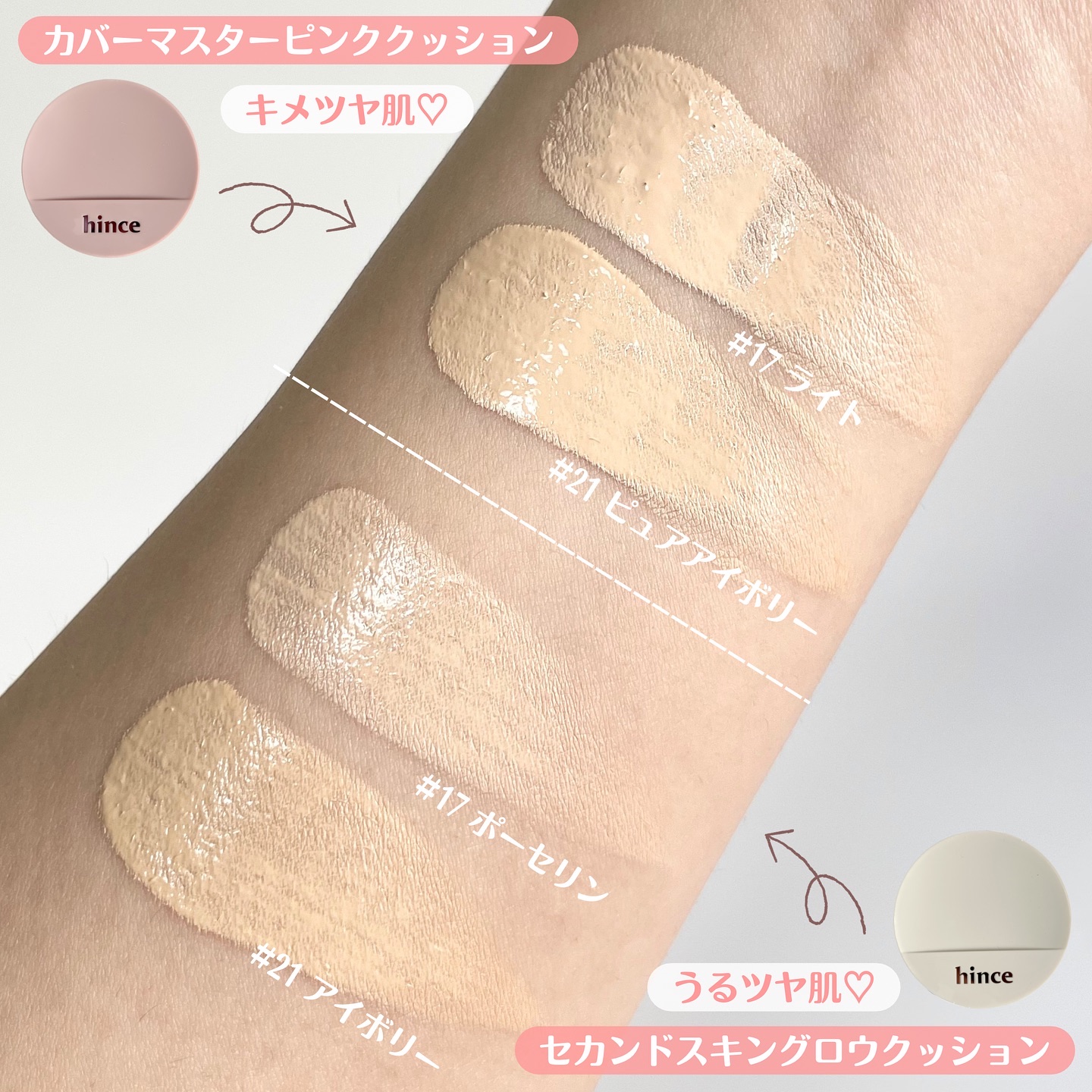 \新発売クッションファンデ💖⸝⸝⸝/hinceさまからいただきましたヒンスカバーマスターピンククッション17と21使ってみた🫧軽くてなめらかな質感で赤みや毛穴を自然にカバー!敏感肌にもやさしいのが嬉しい🍃⸝⸝⸝17はふわっとトーンアップし、色...