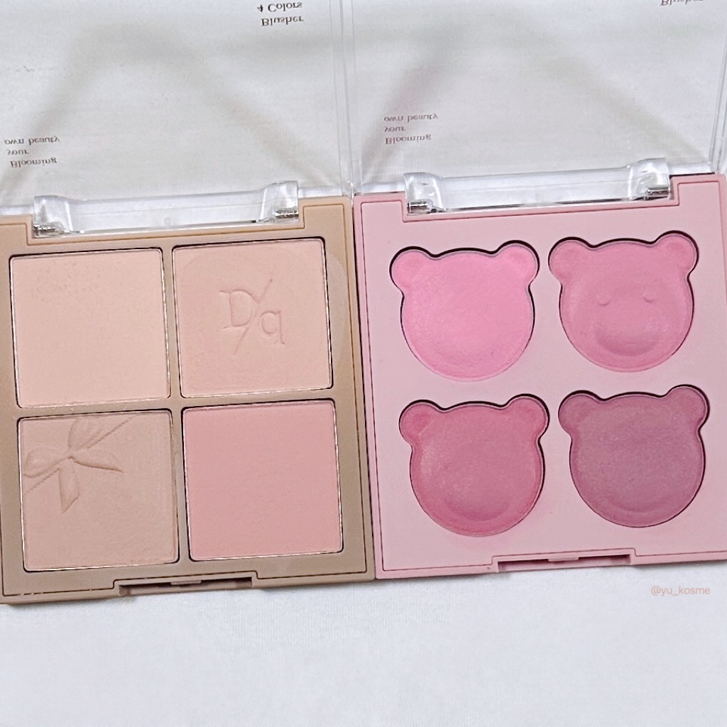 デイジークの新作マイベアコレクション🐻💕 このパケの可愛さにやられました… しっとりとしたゼリータイプ。ヨレにくいシルキーなパウダーで滑らか✨ クール系ピンク4色がセットされた ピンク好きにはたまらない配色🥰