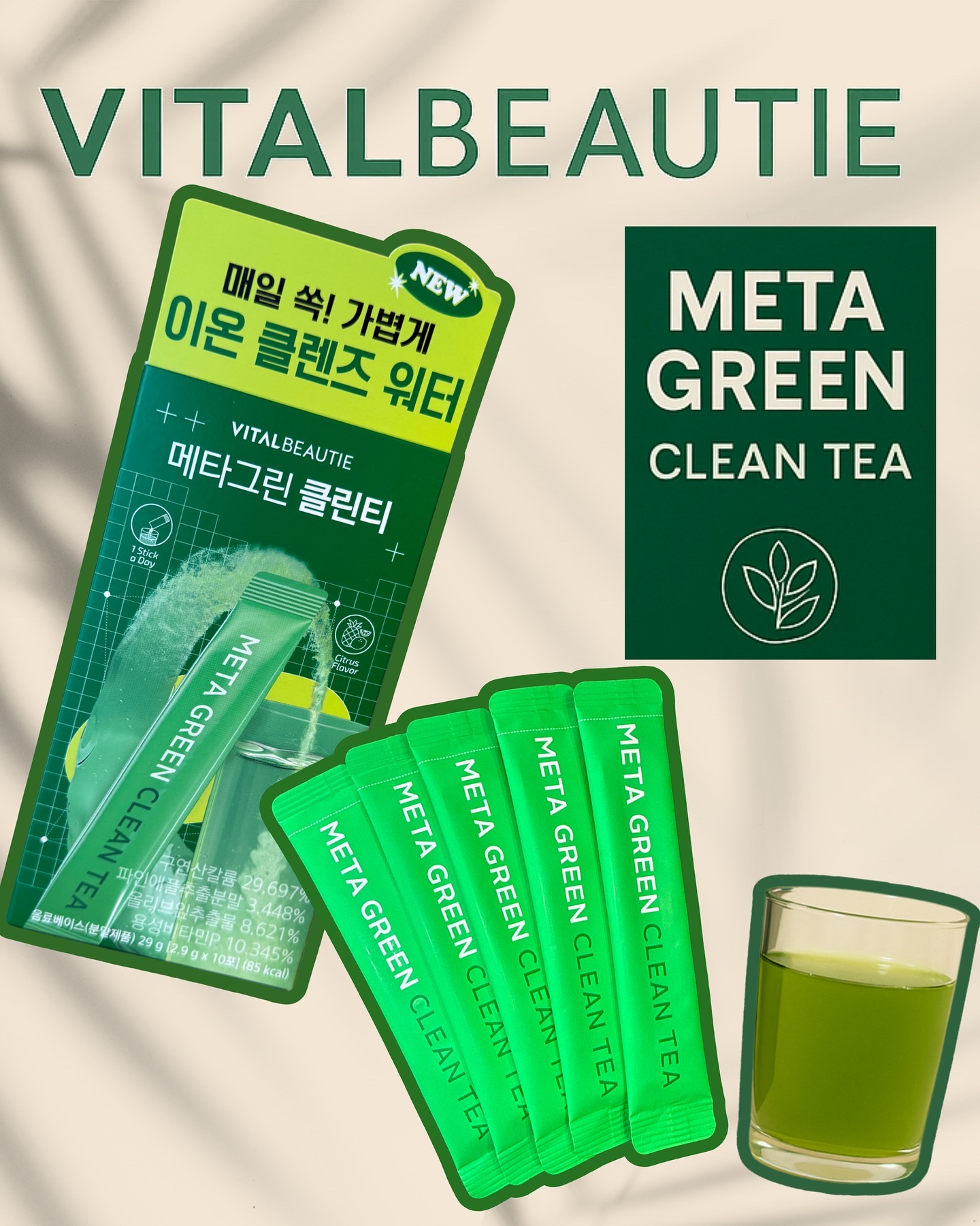 飲むたびすっきり!VITALBEAUTIEメタグリーンクレンズティー韓国発のウェルネスブランドVITALBEAUTIEから出ている「メタグリーンクレンズティー」をお試し♡♡ヴィーガン認証を受けた植物性成分で構成。ほんのりハーブのような爽やかな...