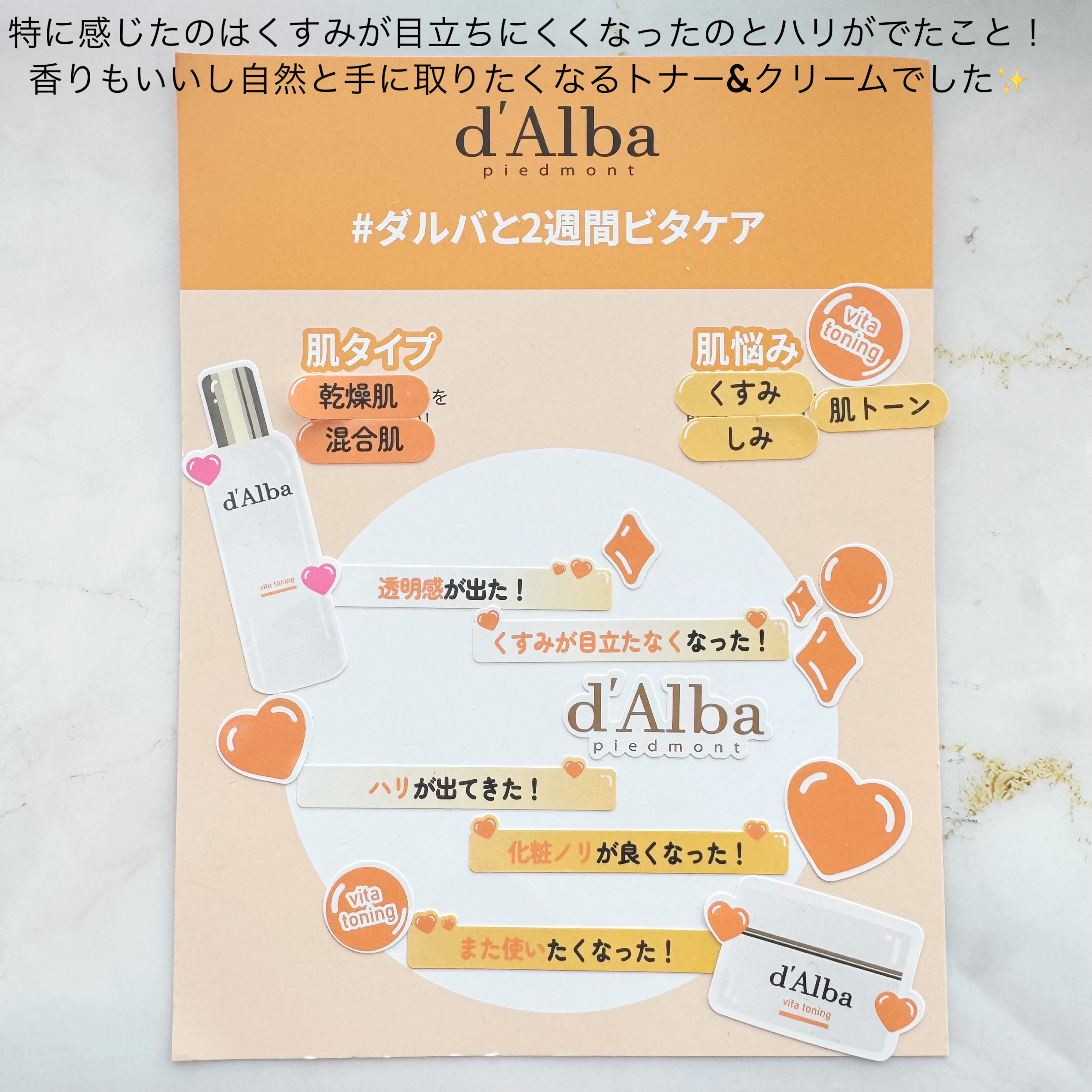 ✧PR✧d'Alba様(@dalba_japan)の【#ダルバと2週間ビタケア】モニターに当選しました🎉💛ビタトーニングセラムトナー・とろみがあるのにスッとなじむ・ビタミンC×グルタチオンで透明感サポート・爽やかな香り◎💛ビタトーニングカプセ...