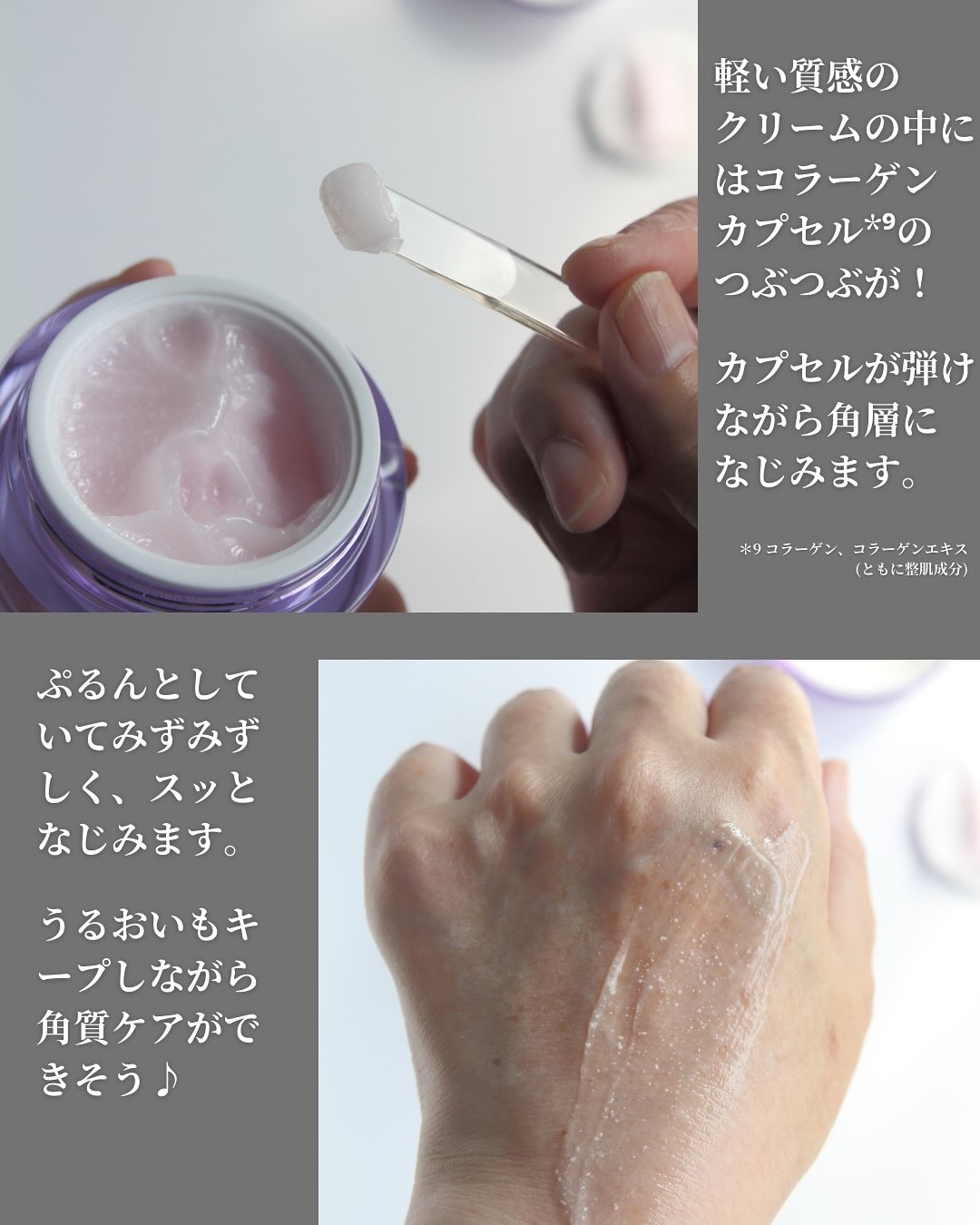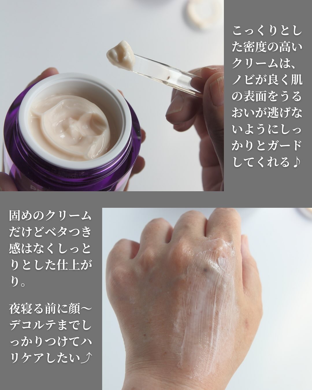| テクスチャーはとろみのあるリッチなクリームで、肌にのせるととろけるように広がります。 | 詳細を見る | ||