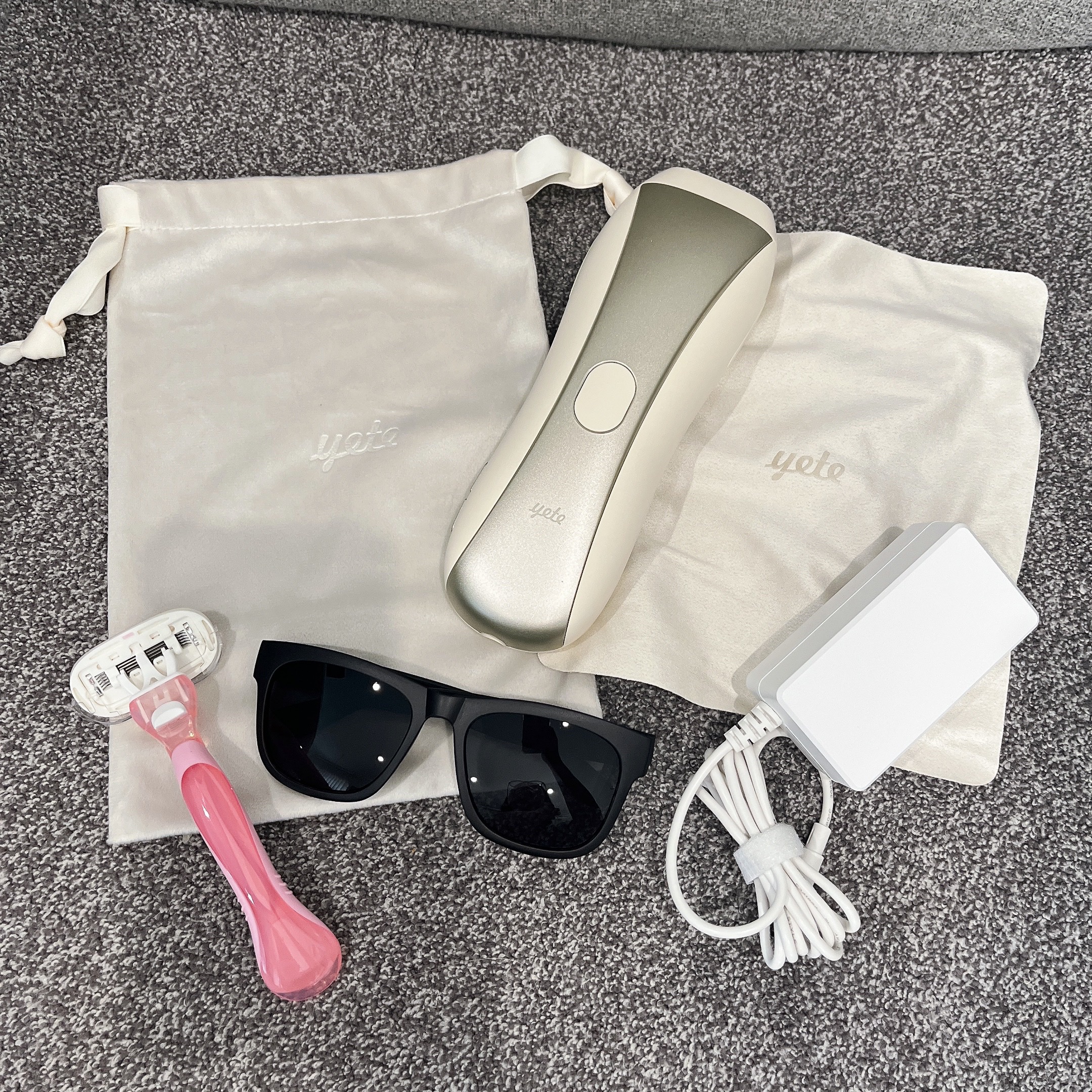 🌿yeteIPL光美容器ベージュとゴールドのおしゃれなIPL光脱毛器✨SHR連続照射&スキンセンサー付きで、点灯のモードの表示も見やすく、少し大きめですが持ちやすくて使いやすいです。VIOや顔、全身で使え、自動手動切り替えもできて、回数制限な...