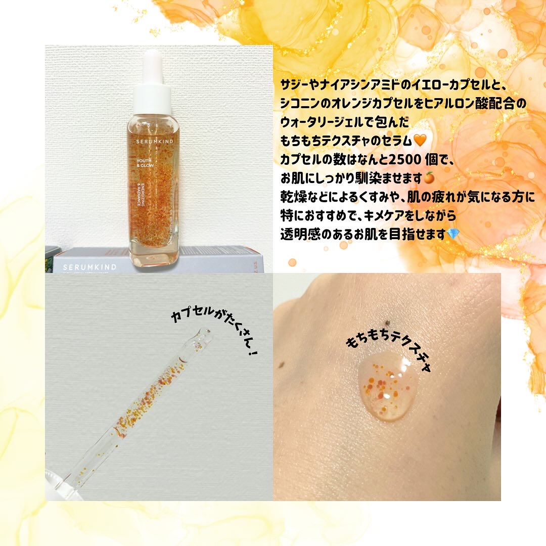 \カプセルセラムがアップグレードしたよ✨/SERUMKINDオレンジカプセルセラム#PRSERUMKIND公式アンバサダー🌿として初めての投稿です👐⋆⋆4月から、オレンジカプセルセラムがアップグレード✨成分や効果はそのまま、オイルカプセルが弾...
