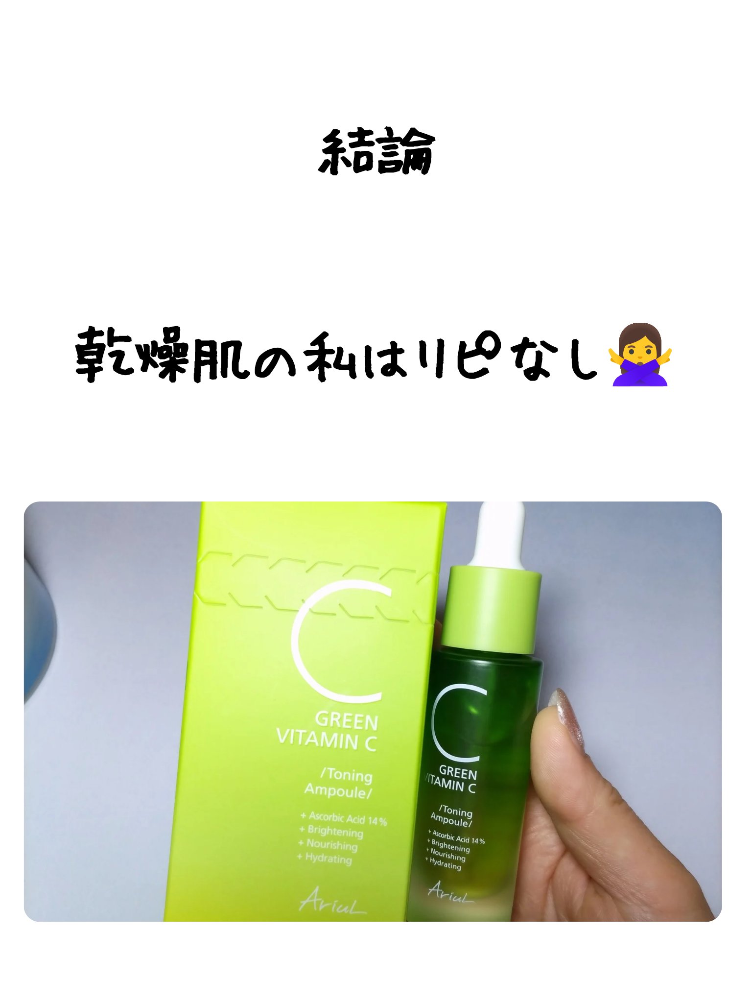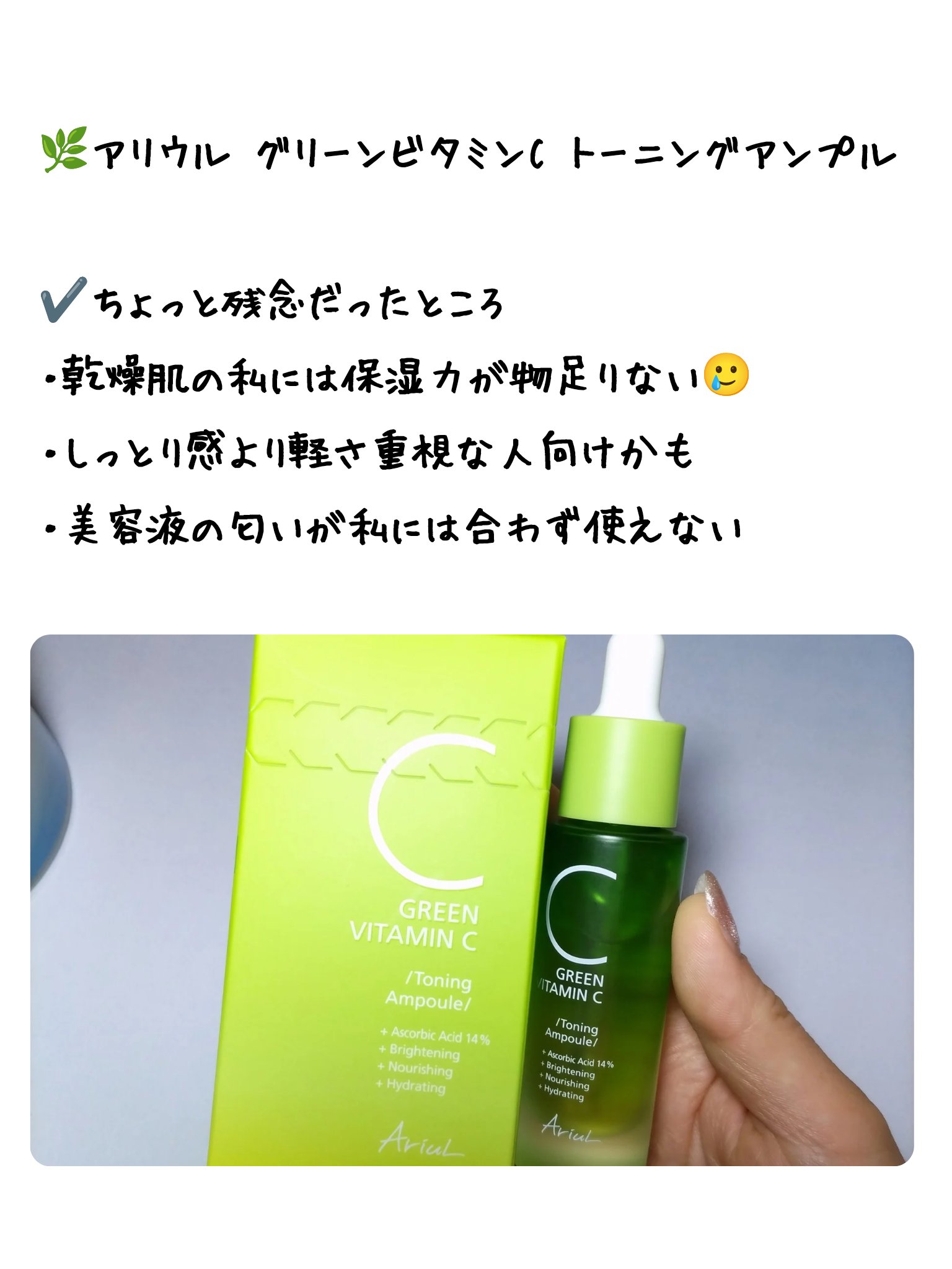 Ariul様から提供して頂きました✨ありがとうございます😚💕【Ariul】『グリーンビタミンCトーニングアンプル』🧷15ml👑純粋ビタミンで味わうトーニングケア👑➡️誘導体X、純粋ビタミン配合で効能UP➡️ビタミンC含量2100mg、なんとレ...