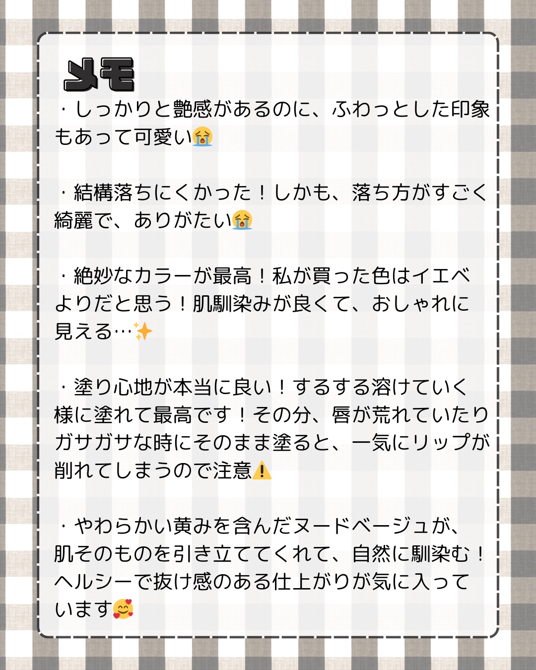 | 口紅・グロス・リップライナーランキング第196位 | 確かに保湿力はあります🧡 シアーな質感で本当みずみずしい☺️ | 詳細を見る | |