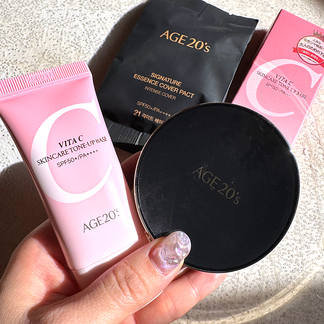 AGE20’S︎︎︎︎︎︎☑︎シグネチャーエッセンスカバーパクト21号︎︎︎︎︎︎☑︎スキンケアトーンアップ下地下地はほんのりピンクで自然にトーンアップ✨寝不足でくすみがちな朝もパッと明るい肌に見せてくれます✨パクトは美容成分がなんと71%も...