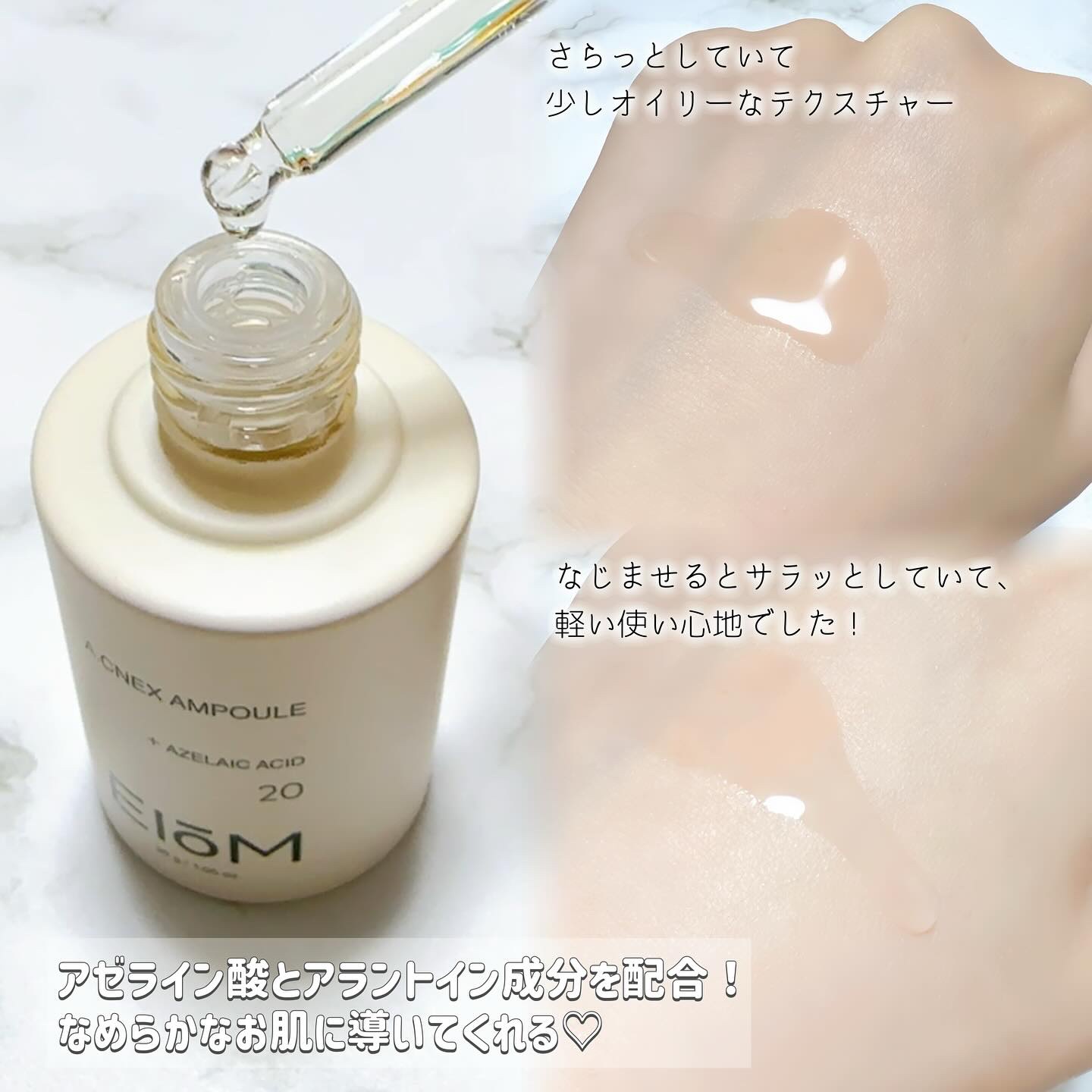 ざらつきも肌荒れも気になる…💦そんな時に頼れる一本✨EIOMアクネクスアンプルで、トラブルゼロ肌を目指そう💖とろりとした軽やかテクスチャーで肌にスーッとなじみ、ベタつかずに角質層まで浸透💧アゼライン酸20%配合でざらつきをオフ、ドクダミ抽出物...