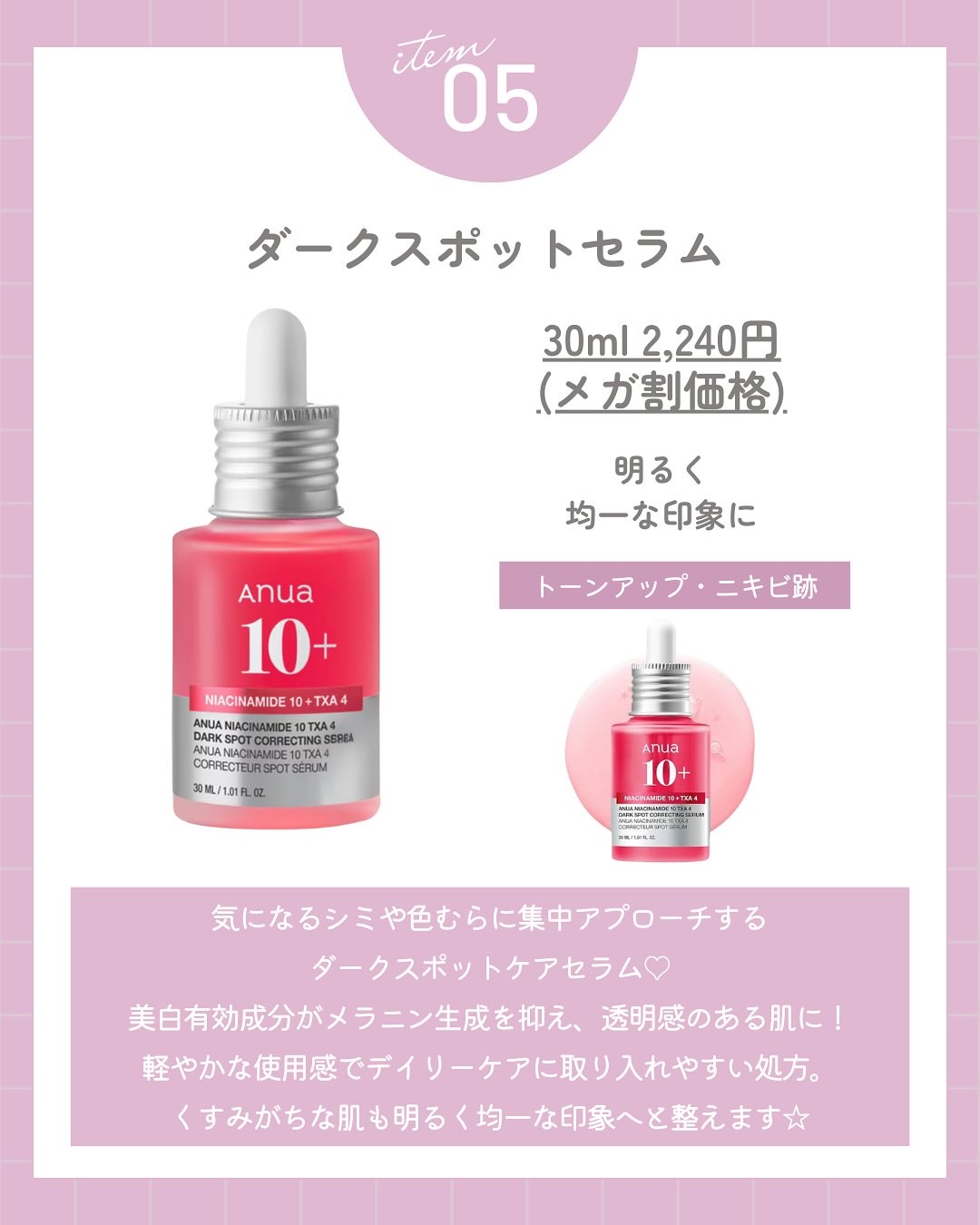 Anua 桃70%ナイアシンセラム | 2,579円 |