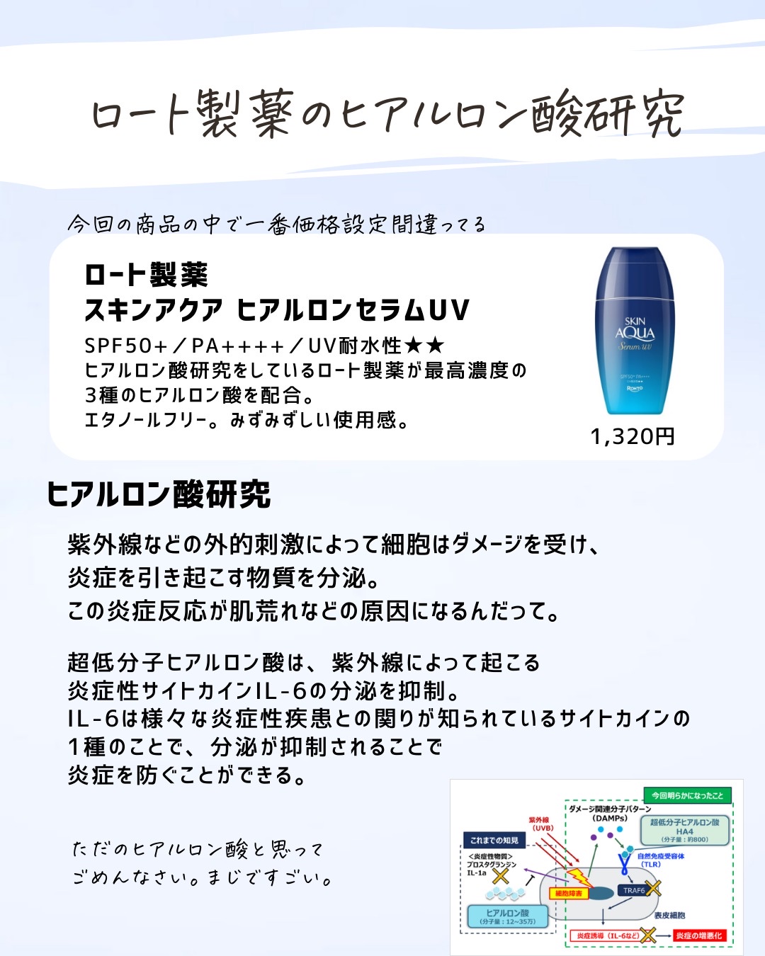 特定の有効成分を試してみたい。美容成分を試したい。そんな時は代用してもいいけど、それって似てるのかな?って思うときが正直ある。 同じ成分があっても実は濃度が違ったり、処方技術が違ったり。技術が違うと使用感も剤型も変わることがあることは知ったうえで使うといいかも。 せっかくプチプラ化粧品を買うならそれはそれで楽しんでほしいから是非念頭にいれてほしいな!!