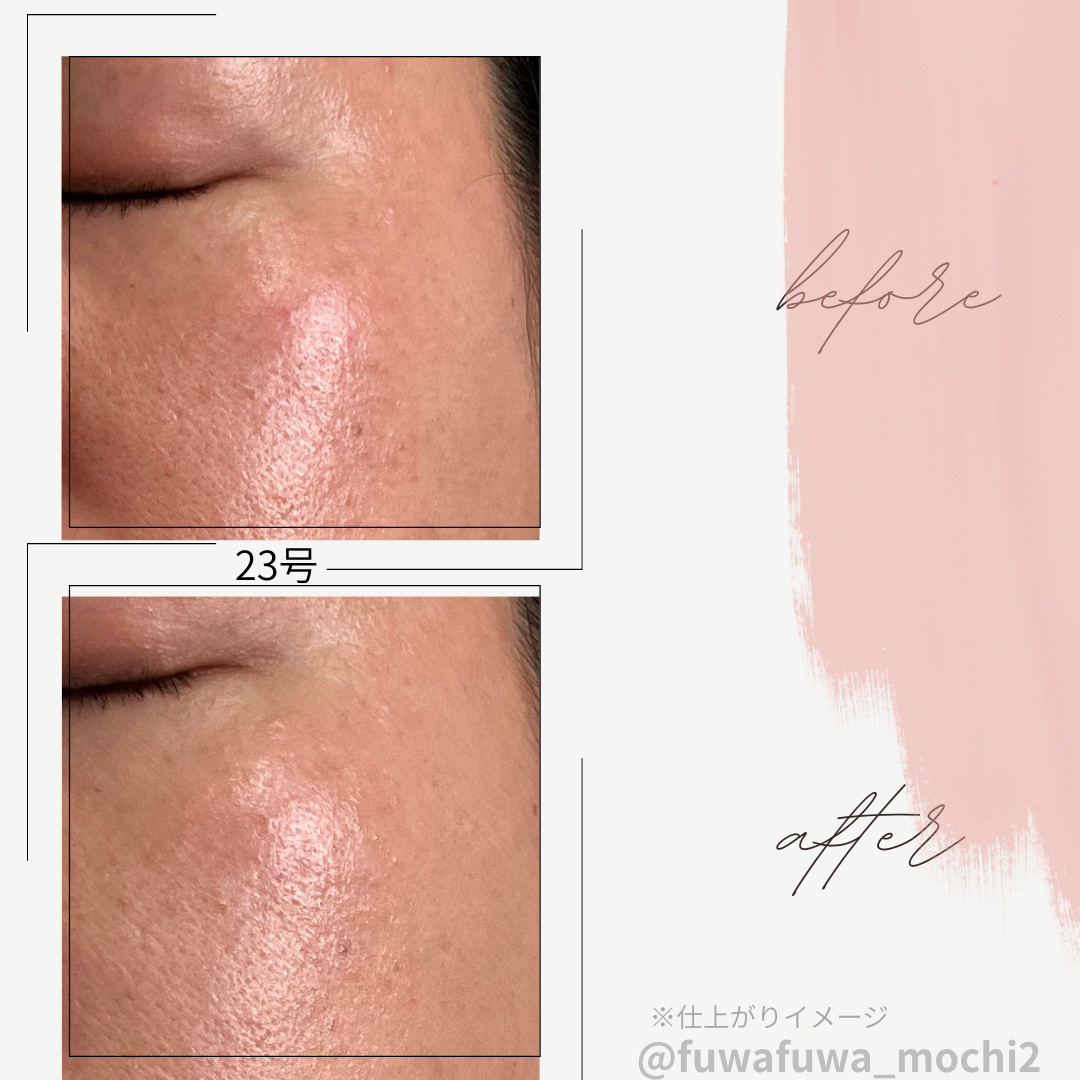 - <21 アイボリー> 水、酸化チタン、酸化亜鉛、ホモサレート、シクロペンタシロキサン、ジメチコン、BG、サリチル酸エチルヘキシル、フェニルトリメチコン、ジヘプタン酸ネオペンチルグリコール、グリセリン、ヘキサ脂肪酸(C5-9)ジペンタエリスリチルエステルズ、安息香酸アルキル(C12-15)、ナイアシンアミド、ポリカプリリルシルセスキオキサン、ラウリルPEG-9ポリジメチルシロキシエチルジメチコン、硫酸Mg、ラウリルポリグリセリル-3ポリジメチルシロキシエチルジメチコン、(アクリレーツ/アクリル酸ステアリル/メタクリル酸ジメチコン)コポリマー、マイカ、水酸化Al、ジステアルジモニウムヘクトライト、ステアリン酸、ラウロイルリシン、カプリル酸グリセリル、カプリリルグリコール、アルキル(C30-45)ジメチルシリルポリプロピルシルセスキオキサン、トリエトキシカプリリルシラン、シリカ、(ジメチコン/ビニルジメチコン)クロスポリマー、香料、エチルヘキシルグリセリン、アルミナ、アデノシン、月見草油、アボカド油、オリーブ果実油、ツバキ種子油、マカデミア種子油、ヒポファエラムノイデス果実油、ダイズ油、ヒマワリ種子油、トコフェロール、1,2-ヘキサンジオール、ツベルマグナツムエキス、ツボクサエキス、加水分解ヒアルロン酸Na、ヒアルロン酸ジメチルシラノール、加水分解ヒアルロン酸、ヒアルロン酸Na、ヒアルロン酸K、ヒアルロン酸、ヒアルロン酸ヒドロキシプロピルトリモニウム、ヒアルロン酸クロスポリマーNa、ヒアルロン酸ジメチルシラノールNa、アセチルヒアルロン酸Na、酸化鉄、リナロール、ヘキシルシンナマル、リモネン <23 ミディアムベージュ> 水、酸化チタン、酸化亜鉛、ホモサレート、シクロペンタシロキサン、ジメチコン、BG、サリチル酸エチルヘキシル、フェニルトリメチコン、ジヘプタン酸ネオペンチルグリコール、グリセリン、ヘキサ脂肪酸(C5-9)ジペンタエリスリチルエステルズ、安息香酸アルキル(C12-15)、ナイアシンアミド、ポリカプリリルシルセスキオキサン、ラウリルPEG-9ポリジメチルシロキシエチルジメチコン、硫酸Mg、ラウリルポリグリセリル-3ポリジメチルシロキシエチルジメチコン、(アクリレーツ/アクリル酸ステアリル/メタクリル酸ジメチコン)コポリマー、マイカ、水酸化Al、ジステアルジモニウムヘクトライト、ステアリン酸、ラウロイルリシン、カプリル酸グリセリル、カプリリルグリコール、アルキル(C30-45)ジメチルシリルポリプロピルシルセスキオキサン、トリエトキシカプリリルシラン、シリカ、(ジメチコン/ビニルジメチコン)クロスポリマー、香料、エチルヘキシルグリセリン、アルミナ、アデノシン、月見草油、アボカド油、オリーブ果実油、ツバキ種子油、マカデミア種子油、ヒポファエラムノイデス果実油、ダイズ油、ヒマワリ種子油、トコフェロール、1,2-ヘキサンジオール、ツベルマグナツムエキス、ツボクサエキス、加水分解ヒアルロン酸Na、ヒアルロン酸ジメチルシラノール、加水分解ヒアルロン酸、ヒアルロン酸Na、ヒアルロン酸K、ヒアルロン酸、ヒアルロン酸ヒドロキシプロピルトリモニウム、ヒアルロン酸クロスポリマーNa、ヒアルロン酸ジメチルシラノールNa、アセチルヒアルロン酸Na、酸化鉄、リナロール、ヘキシルシンナマル、リモネン