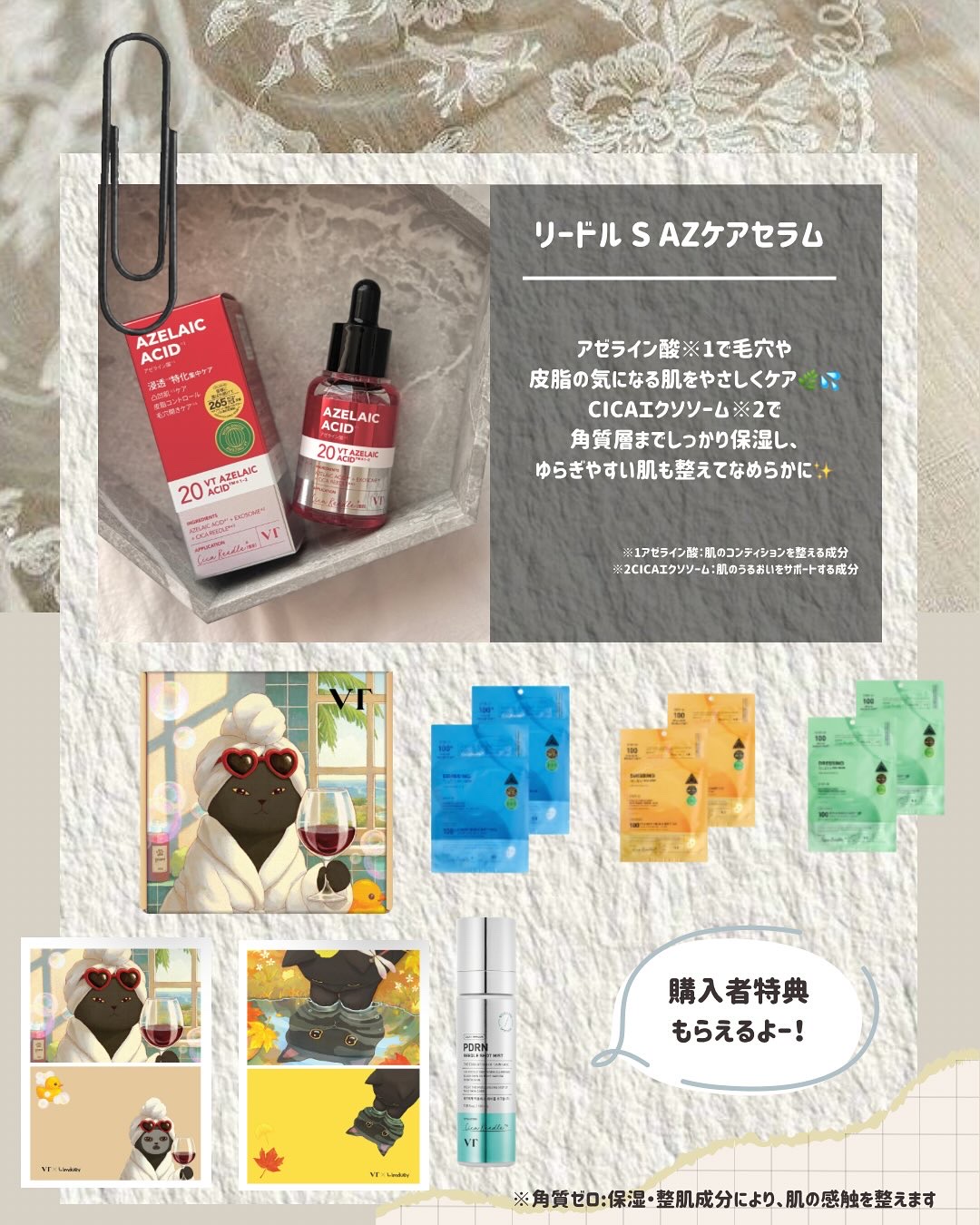 @vtcosmetics_japanVTアンバサダー投稿です😊Qo010メガ割期間限定BOX「VT肌悩みニャンでもおまかせセット」が販売されます✨私が紹介するのはアゼライン酸セット(アゼライン酸角質ゼロセット)通常価格:16,360円/メガ割...
