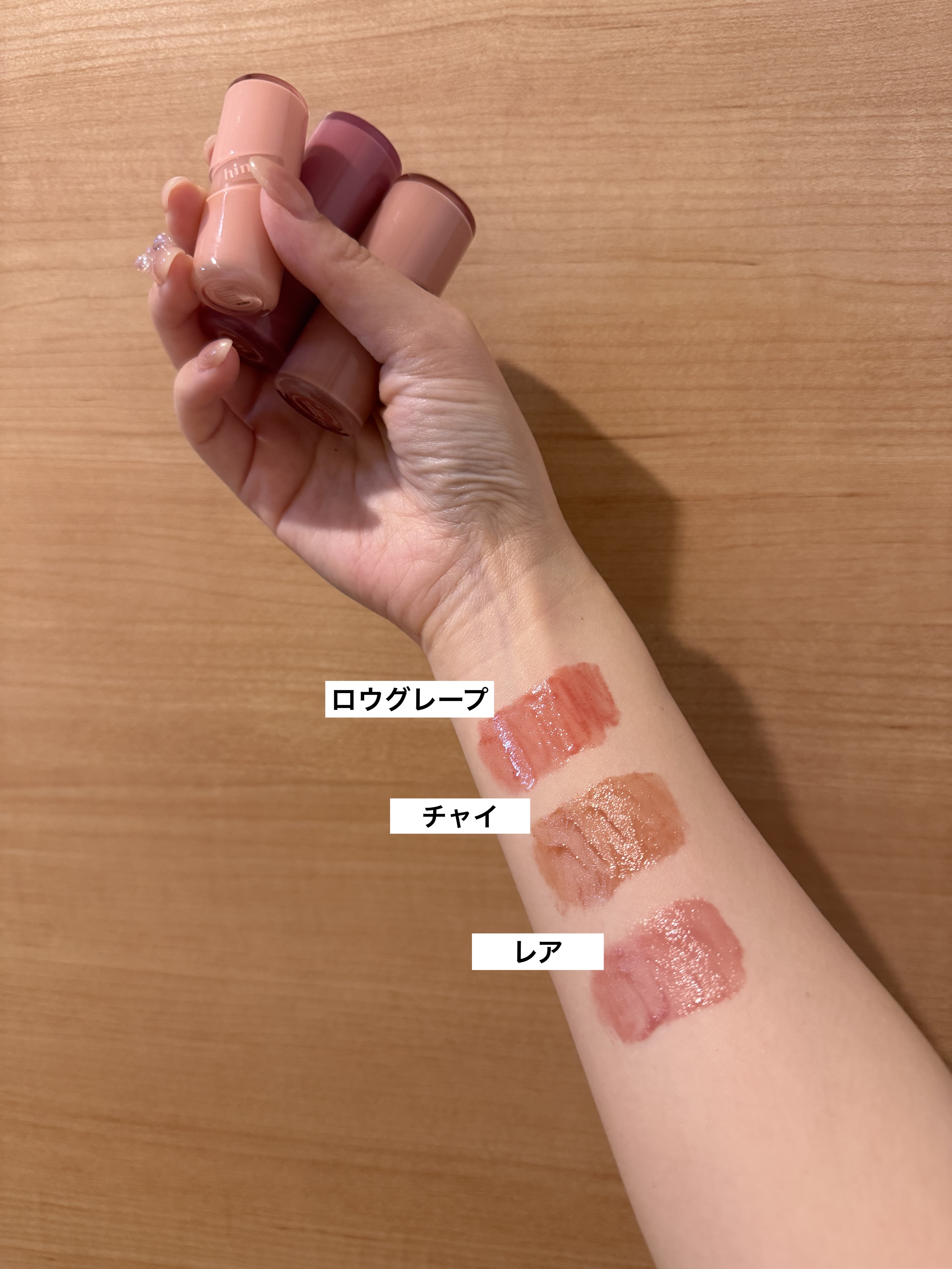 - <R001 ベア> 水、ジフェニルジメチコン、オクチルドデカノール、ビスジグリセリルポリアシルアジペート-2、リンゴ酸ジイソステアリル、トリメチルシロキシフェニルジメチコン、水添ポリイソブテン、ジグリセリン、ポリソルベート60、BG、セチルPEG/PPG-10/1ジメチコン、1,2-ヘキサンジオール、ペンチレングリコール、(アクリル酸ヒドロキシエチル/アクリロイルジメチルタウリンNa)コポリマー、セテアレス-20、スクワラン、フェノキシエタノール、酸化チタン、香料、エチルヘキシルグリセリン、黄5、赤227、イソステアリン酸ソルビタン、水酸化Al、ポリアクリル酸アンモニウム、酢酸トコフェロール、黄4、青1、ヒアルロン酸Na、(アルギニン/リシン)ポリペプチド、加水分解ヒアルロン酸、トコフェロール、アセチルヒアルロン酸Na、ソルビン酸 <R002 ロウローズ> 水、ジフェニルジメチコン、オクチルドデカノール、ビスジグリセリルポリアシルアジペート-2、リンゴ酸ジイソステアリル、トリメチルシロキシフェニルジメチコン、水添ポリイソブテン、ジグリセリン、ポリソルベート60、BG、セチルPEG/PPG-10/1ジメチコン、1,2-ヘキサンジオール、ペンチレングリコール、(アクリル酸ヒドロキシエチル/アクリロイルジメチルタウリンNa)コポリマー、セテアレス-20、スクワラン、フェノキシエタノール、酸化チタン、香料、エチルヘキシルグリセリン、黄5、赤227、イソステアリン酸ソルビタン、酢酸トコフェロール、水酸化Al、ポリアクリル酸アンモニウム、ヒアルロン酸Na、青1、加水分解ヒアルロン酸、(アルギニン/リシン)ポリペプチド、トコフェロール、アセチルヒアルロン酸Na、ソルビン酸 <R003 ロウプリコット> 水、ジフェニルジメチコン、オクチルドデカノール、ビスジグリセリルポリアシルアジペート-2、リンゴ酸ジイソステアリル、トリメチルシロキシフェニルジメチコン、水添ポリイソブテン、ジグリセリン、ポリソルベート60、BG、セチルPEG/PPG-10/1ジメチコン、1,2-ヘキサンジオール、ペンチレングリコール、(アクリル酸ヒドロキシエチル/アクリロイルジメチルタウリンNa)コポリマー、セテアレス-20、スクワラン、フェノキシエタノール、香料、エチルヘキシルグリセリン、酸化チタン、黄5、イソステアリン酸ソルビタン、赤227、酢酸トコフェロール、ヒアルロン酸Na、水酸化Al、ポリアクリル酸アンモニウム、加水分解ヒアルロン酸、青1、(アルギニン/リシン)ポリペプチド、トコフェロール、アセチルヒアルロン酸Na、ソルビン酸 <R004 フィーバー> 水、ジフェニルジメチコン、オクチルドデカノール、リンゴ酸ジイソステアリル、ビスジグリセリルポリアシルアジペート-2、トリメチルシロキシフェニルジメチコン、水添ポリイソブテン、ジグリセリン、ポリソルベート60、BG、セチルPEG/PPG-10/1ジメチコン、1,2-ヘキサンジオール、ペンチレングリコール、(アクリル酸ヒドロキシエチル/アクリロイルジメチルタウリンNa)コポリマー、セテアレス-20、スクワラン、フェノキシエタノール、香料、エチルヘキシルグリセリン、黄5、赤227、イソステアリン酸ソルビタン、酢酸トコフェロール、ヒアルロン酸Na、加水分解ヒアルロン酸、(アルギニン/リシン)ポリペプチド、トコフェロール、アセチルヒアルロン酸Na、ソルビン酸 <R005 ハイビスカス> 水、ジフェニルジメチコン、オクチルドデカノール、ビスジグリセリルポリアシルアジペート-2、リンゴ酸ジイソステアリル、トリメチルシロキシフェニルジメチコン、水添ポリイソブテン、ジグリセリン、ポリソルベート60、BG、セチルPEG/PPG-10/1ジメチコン、1,2-ヘキサンジオール、ペンチレングリコール、アクリル酸ヒドロキシエチル/アクリロイルジメチルタウリンNa)コポリマー、セテアレス-20、スクワラン、フェノキシエタノール、香料、エチルヘキシルグリセリン、赤227、黄5、イソステアリン酸ソルビタン、赤104(1)、酢酸トコフェロール、ヒアルロン酸Na、加水分解ヒアルロン酸、(アルギニン/リシン)ポリペプチド、トコフェロール、アセチルヒアルロン酸Na、ソルビン酸 <R006 ロウグレープ> 水、ジフェニルジメチコン、ビスジグリセリルポリアシルアジペート-2、リンゴ酸ジイソステアリル、オクチルドデカノール、トリメチルシロキシフェニルジメチコン、水添ポリイソブテン、ジグリセリン、ポリソルベート60、BG、セチルPEG/PPG-10/1ジメチコン、1,2-ヘキサンジオール、ペンチレングリコール、(アクリル酸ヒドロキシエチル/アクリロイルジメチルタウリンNa)コポリマー、セテアレス-20、スクワラン、酸化チタン、フェノキシエタノール、香料、エチルヘキシルグリセリン、黄5、赤227、イソステアリン酸ソルビタン、水酸化Al、ポリアクリル酸アンモニウム、酢酸トコフェロール、ヒアルロン酸Na、青1、加水分解ヒアルロン酸、(アルギニン/リシン)ポリペプチド、トコフェロール、アセチルヒアルロン酸Na、ソルビン酸 <R007 チル> 水、ジフェニルジメチコン、オクチルドデカノール、ビスジ