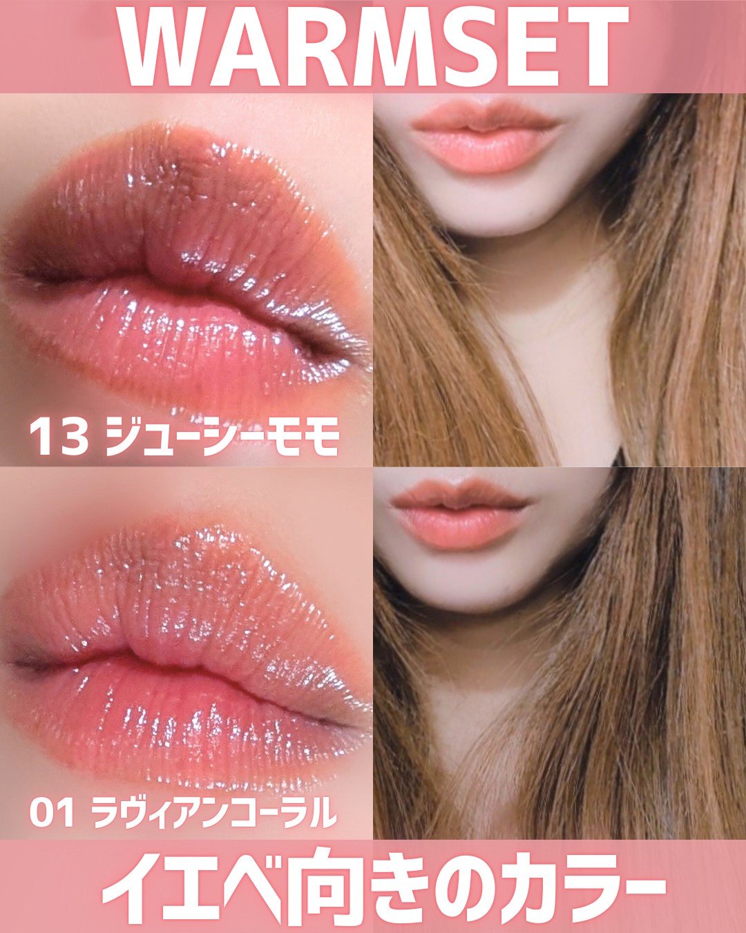 - <01 ラヴィアンコーラル> 精製水、ジフェニルジメチコン、リンゴ酸ジイソステアリル、ビスジグリセリルポリアシルアジペート-2、水添ポリイソブテン、ジグリセリン、セチルPEG/PPG-10/1ダイメチコン、DPG、イソステアリン酸ソルビタン、ポリソルベート60、オクチルドデカノール、ペンチレングリコール、グリセリン、二酸化チタン、セテアレス-20、アクリル酸ヒドロキシエチル/ナトリウムアクリロイルジメチルタウリン酸共重合体フェノキシエタノール、スクアラン、ポリグリセリン-3、香料、ステビオシド、黄色4号、エチルヘキシルグリセリン、赤色227号、トリ(カプリル/カプリン酸)グリセリル、赤色104号(1)、トコフェリルアセテート、黄色5 号、ブリリアントブルーFCF、マンゴー果実エキス、リンゴエキス <06 フィグデュー> 水、ジフェニルジメチコン、リンゴ酸ジイソステアリル、ポリアシルアジピン酸ビス-ジグリセリル-2、水添ポリイソブテン、ジグリセリン、セチルPEG/PPG-10/1ジメチコン、ジプロピレングリコール、イソステアリン酸ソルビタン、ポリソルベート60、オクチルドデカノール、ペンチレングリコール、グリセリン、二酸化チタン(CI) 77891)、セテアレス-20、アクリル酸ヒドロキシエチル/アクリロイルジメチルタウリンナトリウムコポリマー、スクワラン、フェノキシエタノール、ポリグリセリン-3、香料、ステビオシド、赤28(CI 45410)、黄6(CI 15985)、黄5(CI 19140)、エチルヘキシルグリセリン、レッド 33 (CI 17200)、カプリル酸/カプリン酸トリグリセリド、酢酸トコフェロール、ブルー 1 (CI 42090)、Mangifera Indica (マンゴー) 果実エキス、Pyrus Malus (リンゴ) 果実エキス <12 日曜日> 水、ジフェニルジメチコン、リンゴ酸ジイソステアリル、ビスジグリセリルポリアシルアジペート-2、水添ポリイソブテン、ジグリセリン、セチルPEG/PPG-10/1ジメチコン、DPG、イソステアリン酸ソルビタン、ポリソルベート60、オクチルドデカノール、ペンチレングリコール、グリセリン、セテアレス-20、(アクリル酸ヒドロキシエチル/アクリロイルジメチルタウリンNa)コポリマー、フェノキシエタノール、スクワラン、ポリグリセリン-3、ステビオシド、香料、エチルヘキシルグリセリン、トリ(カプリル酸/カプリン酸)グリセリル、酢酸トコフェロール、マンゴー果実エキス、リンゴ果実エキス、酸化チタン、酸化鉄、黄4、赤227、赤104(1)、黄5、青1 <【旧】02 漢江ブリーズ> 水、ジフェニルジメチコン、リンゴ酸ジイソステアリル、ポリアシルアジピン酸ビス-ジグリセリル-2、水添ポリイソブテン、ジグリセリン、セチルPEG/PPG-10/1ジメチコン、ジプロピレングリコール、イソステアリン酸ソルビタン、ポリソルベート60、オクチルドデカノール、ペンチレングリコール、グリセリン、二酸化チタン(CI) 77891)、セテアレス-20、アクリル酸ヒドロキシエチル/アクリロイルジメチルタウリンナトリウムコポリマー、フェノキシエタノール、スクワラン、イエロー6 (CI 15985)、ポリグリセリン-3、香料、ステビオシド、エチルヘキシルグリセリン、レッド33 (CI 17200)、レッド28 (CI 45410)、トリカプリル/カプリン酸グリセリド、酢酸トコフェロール、ブルー 1 (CI 42090)、Mangifera Indica (マンゴー) 果実エキス、Pyrus Malus (リンゴ) 果実エキス <【旧】05 ヒップジロー> 水、ジフェニルジメチコン、リンゴ酸ジイソステアリル、ポリアシルアジピン酸ビス-ジグリセリル-2、水添ポリイソブテン、ジグリセリン、セチルPEG/PPG-10/1ジメチコン、ジプロピレングリコール、イソステアリン酸ソルビタン、ポリソルベート60、オクチルドデカノール、ペンチレングリコール、グリセリン、二酸化チタン(CI) 77891)、セテアレス-20、アクリル酸ヒドロキシエチル/アクリロイルジメチルタウリンナトリウムコポリマー、スクワラン、フェノキシエタノール、イエロー6 (CI 15985)、ポリグリセリン-3、香料、ステビオシド、エチルヘキシルグリセリン、レッド33 (CI 17200)、カプリル酸/カプリン酸トリグリセリド、酢酸トコフェロール、ブルー 1 (CI 42090)、Mangifera Indica (マンゴー) 果実エキス、Pyrus Malus (リンゴ) 果実エキス <【旧】09 ソウル ソウル> 水、ジフェニルジメチコン、マレートジソステアル、ビスジグリセリルポリシルダイピン-2、水素化ポリイソブテン、ディグリセリン、セチルペグ/PPG-10/1ジメチコン、ジップロピレングリコール、ソルビトン等酸塩、ポリソルベ酸60、オクティロドデドカン、ペンシェルン、ペントリン酸塩、ペントリ酸塩、ペンシュレン 二酸化チタン (CI 77891)、アクリル酸ヒドロキシエチル/アクリロイルジメチルタウリン酸ナトリウムコポリマー、フェノキシエタノール、スクワラン、イエロー6 (CI 15985)、ポリグリセリン-3、香料、ステビオシド、エチルヘキシルグリセリン、レッド33 (CI 17200)、カプリル酸/カプリン酸トリグリセリド、酢酸トコフェロール、ブルー 1 (CI 42090)、Mangifera Indica (マンゴー) 果実エキス、Pyrus Malus (リンゴ) 果実エキス <【旧】10 朝イチジク> 水、ジフェニルジメ