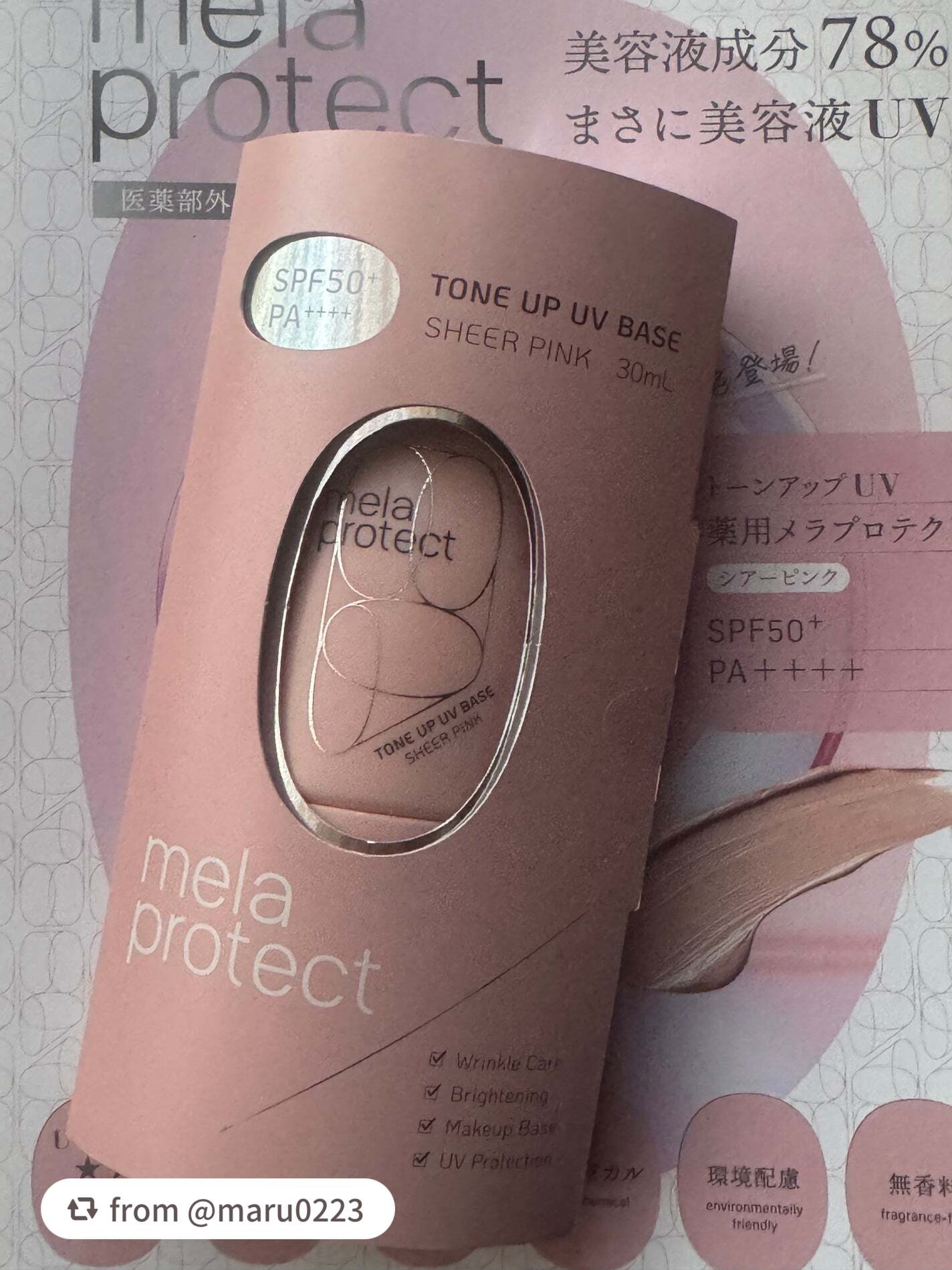 - メラプロテクト 有効成分:ナイアシンアミド その他の成分:デカメチルシクロペンタシロキサン、低温焼成酸化亜鉛、精製水、微粒子酸化チタン、ポリオキシエチレン・メチルポリシロキサン共重合体、水酸化アルミニウム、メチルハイドロジェンポリシロキサン、1,2-ペンタンジオール、アクリル酸アルキル共重合体メチルポリシロキサンエステル、塩化ナトリウム、1,3-ブチレングリコール、トリイソステアリン酸ジグリセリル、クエン酸ナトリウム、クエン酸、ジエチレントリアミン五酢酸五ナトリウム液、ヒドロキシエタンジホスホン酸四ナトリウム液、オウゴンエキス、イタドリエキス、ツボクサエキス、チャエキス(1)、加水分解ローヤルゼリータンパク液、ローズマリーエキス、チンピエキス、カモミラエキス(1)、ゲンチアナエキス、シラカバエキス、ヨモギエキス、フェノキシエタノール、カンゾウエキス、d-δ-トコフェロール、ヨクイニンエキス、ヒアルロン酸ナトリウム(2)、グリチルリチン酸ジカリウム メラプロテクト シアーピンク 有効成分:ナイアシンアミド その他の成分:デカメチルシクロペンタシロキサン、低温焼成酸化亜鉛、精製水、微粒子酸化チタン、ポリオキシエチレン・メチルポリシロキサン共重合体、水酸化アルミニウム、メチルハイドロジェンポリシロキサン、1,2-ペンタンジオール、アクリル酸アルキル共重合体メチルポリシロキサンエステル、酸化チタン、塩化ナトリウム、1,3-ブチレングリコール、クエン酸ナトリウム、トリイソステアリン酸ジグリセリル、黄酸化鉄、クエン酸、ジエチレントリアミン五酢酸五ナトリウム液、ヒドロキシエタンジホスホン酸四ナトリウム液、ベンガラ、イタドリエキス、オウゴンエキス、黒酸化鉄、チャエキス(1)、ツボクサエキス、N-ラウロイル-L-グルタミン酸ナトリウム、カモミラエキス(1)、チンピエキス、ローズマリーエキス、加水分解ローヤルゼリータンパク液、ゲンチアナエキス、L-リジン液、シラカバエキス、塩化マグネシウム、カンゾウエキス、フェノキシエタノール、ヨモギエキス、d-δ-トコフェロール、ヨクイニンエキス、グリチルリチン酸ジカリウム、ヒアルロン酸ナトリウム(2)
