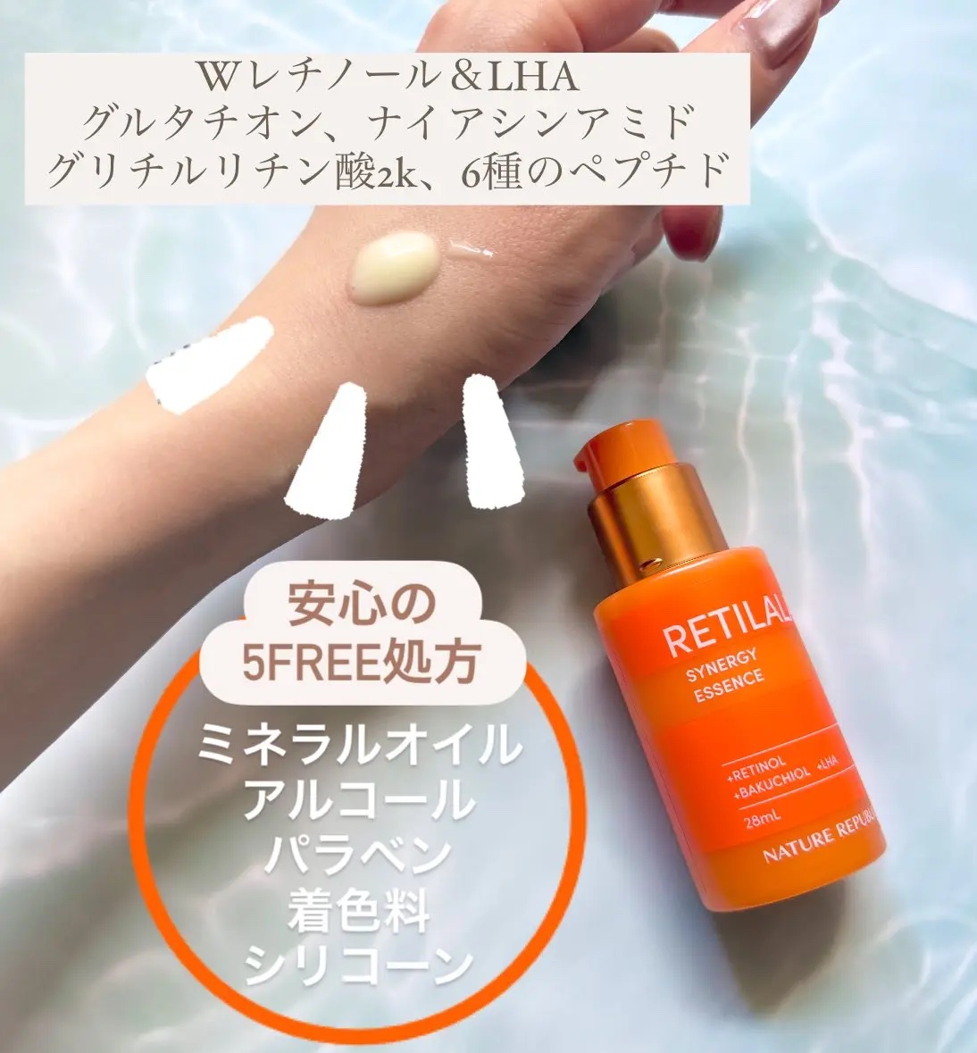 ♡NATUREレチララ美容液@naturerepublic_jp さまの洗顔後すぐに塗る、導入ピール美容液です✨レチノール、バクチオール、LHAで保湿しながら角質ケアできる美容液だよ🙌洗顔後すぐに使うタイプでとろみがあるけどべつかない💕わたし...