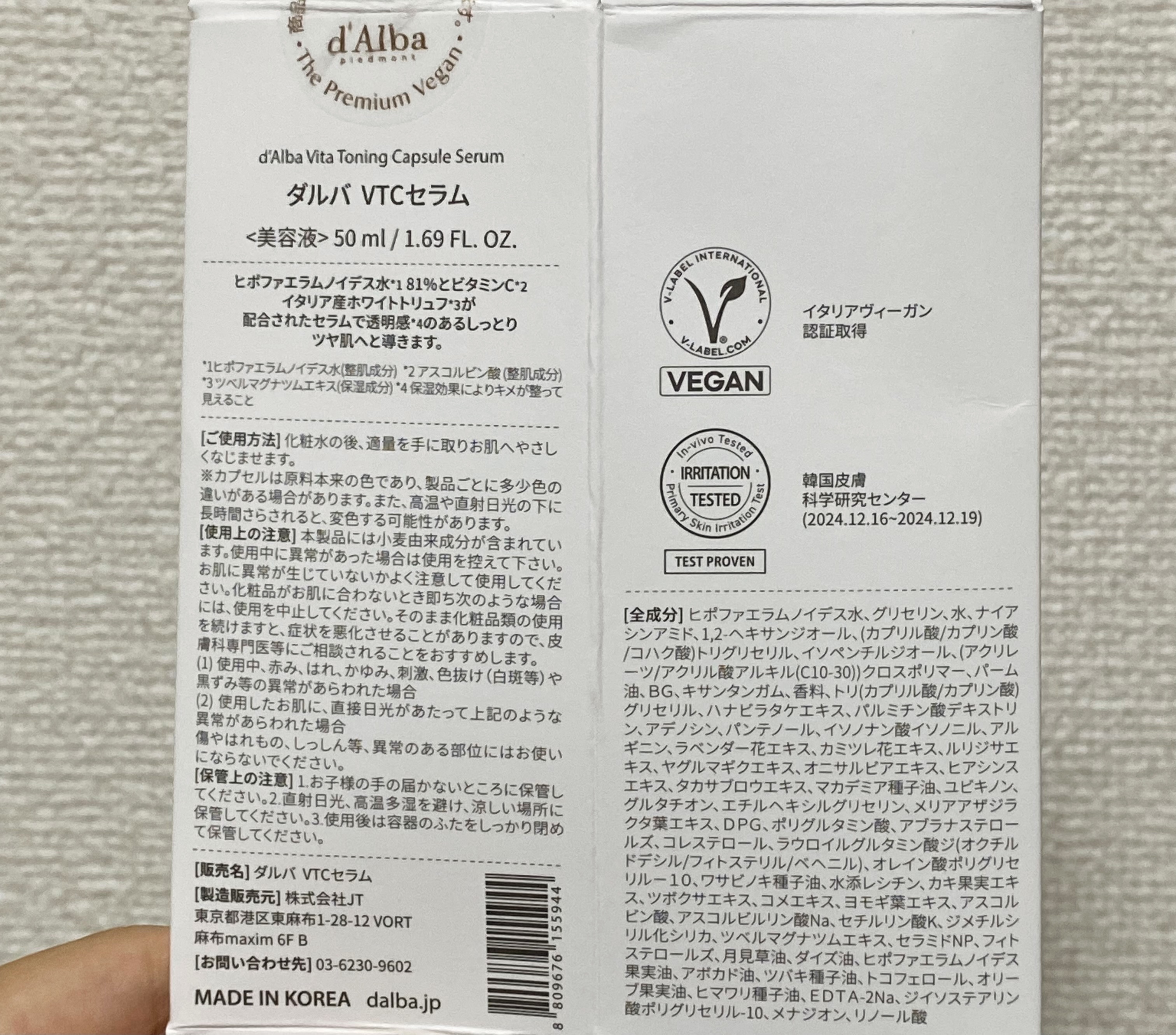 - <50ml> ヒポファエラムノイデス水、グリセリン、水、ナイアシンアミド、1,2-ヘキサンジオール、(カプリル酸/カプリン酸/コハク酸)トリグリセリル、インペンチルジオール、(アクリルーツ/アクリル酸アルキル(C10-30))クロスポリマー、パーム油、BG、キサンタンガム、香料、トリ(カプリル酸/カプリン酸)グリセリル、ハナビラタケエキス、パルミチン酸デキストリン、アデノシン、パンテノール、イソノナン酸イソノニル、アルギニン、ラベンダー花エキス、カミツレ花エキス、ルリジサエキス、ヤグルマギクエキス、オニサルビアエキス、ヒアシンスエキス、タカサブロウエキス、マカデミア種子油、ユビキノン、グルタチオン、エチルヘキシルグリセリン、メリアアザジラクタ葉エキス、DPG、ポリグルタミン酸、アブラナステロールズ、コレステロール、ラウロイルグルタミン酸ジ(オクチルドデシル/フィトステリル/ベヘニル)、オレイン酸ポリグリセリー10、ワサビノキ種子油、水レシチン、カキ果実エキス、ツボクサエキス、コメエキス、ヨモギ葉エキス、アスコルビン酸、アスコルビルリン酸Na、セチルリン酸K、ジメチルシリル化シリカ、ツベルマグナツムエキス、セラミドNP、フィトステロールズ、月見草油、ダイズ油、ヒポファエラムノイデス果実油、アボカド油、ツバキ種子油、トコフェロール、オリーブ果実油、ヒマワリ種子油、EDTA-2Na、ジインステアリン酸ポリグリセリル-10、メナジオン、リノール酸 <100ml> ヒポファエラムノイデス水、グリセリン、水、ナイアシンアミド、1,2-ヘキサンジオール、(カプリル酸/カプリン酸/コハク酸)トリグリセリル、インペンチルジオール、(アクリルーツ/アクリル酸アルキル(C10-30))クロスポリマー、パーム油、BG、キサンタンガム、香料、トリ(カプリル酸/カプリン酸)グリセリル、ハナビラタケエキス、パルミチン酸デキストリン、アデノシン、パンテノール、イソノナン酸イソノニル、アルギニン、ラベンダー花エキス、カミツレ花エキス、ルリジサエキス、ヤグルマギクエキス、オニサルビアエキス、ヒアシンスエキス、タカサブロウエキス、マカデミア種子油、ユビキノン、グルタチオン、エチルヘキシルグリセリン、メリアアザジラクタ葉エキス、DPG、ポリグルタミン酸、アブラナステロールズ、コレステロール、ラウロイルグルタミン酸ジ(オクチルドデシル/フィトステリル/ベヘニル)、オレイン酸ポリグリセリー10、ワサビノキ種子油、水レシチン、カキ果実エキス、ツボクサエキス、コメエキス、ヨモギ葉エキス、アスコルビン酸、アスコルビルリン酸Na、セチルリン酸K、ジメチルシリル化シリカ、ツベルマグナツムエキス、セラミドNP、フィトステロールズ、月見草油、ダイズ油、ヒポファエラムノイデス果実油、アボカド油、ツバキ種子油、トコフェロール、オリーブ果実油、ヒマワリ種子油、EDTA-2Na、ジインステアリン酸ポリグリセリル-10、メナジオン、リノール酸